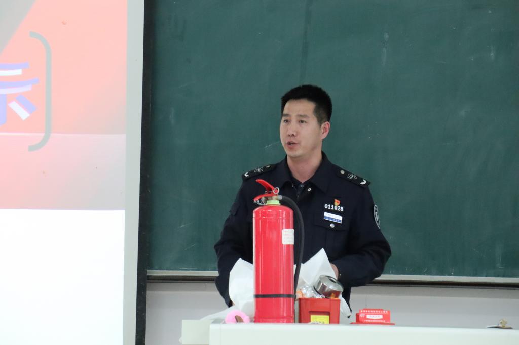 大会中,周中平老师针对近期各地出现的火灾事故,强调了消防安全责任人的重要责任,区分了消防与治安两种不同概念的差别,并引出了什么是火灾、大学生消防安全教育的重要性、学生宿舍防火安全的必要性以及火灾预防与扑救、疏散与逃生等相关知识。随后,播放了关于消防安全的宣传短片,让大家对消防安全有了更为直观的了解。而后,周老师演示了火灾消防面具的使用方法,讲解了消防安全门的功能与作用,示范了使用消防灭火毯的动作要领,带领大家重新认识了的灭火器与消火栓。