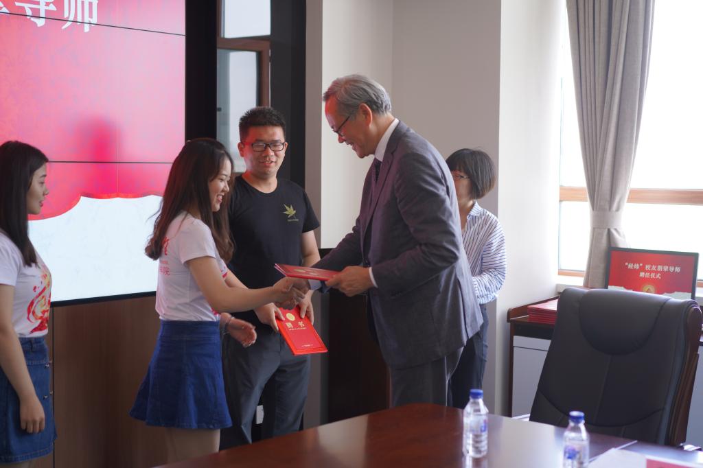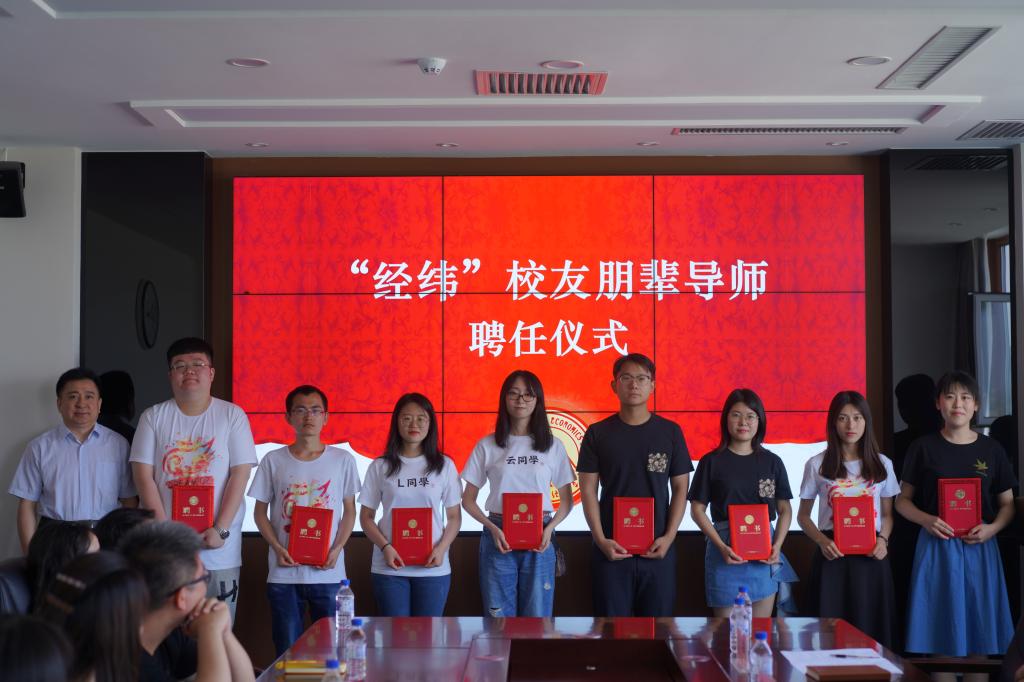 会议首先进行的是“经纬”校友朋辈导师聘任仪式。按照学校人才培养要求,提升学生升学率和出国率,必赢线路检测3003出台《“经纬”大学生思想政治教育培养方案》,方案以提升学院人才培养质量为目标,以思想政治教育为经线,以教学为纬线,实现纵向分类指导,横向分层次引导,搭建具有经济学科特点的人才培养矩阵。方案按照学生对未来的规划为学员配备“经纬”校友朋辈导师,通过一对一指导、线上讲座等多种形式,指导学生保研、考研、出国留学、就业等相关事项。首批聘任保送清华大学周圣钧等17名毕业生为“经纬”学业发展校友朋辈导师,聘任留学杜克大学王健光等7名同学为“经纬”留学服务校友朋辈导师,聘任选调到中组部杨琳璞等7名毕业生为“经纬”就业指导校友朋辈导师。党委书记陈密、院长李晓、党委副书记张倩分别为获聘毕业生颁发聘书。