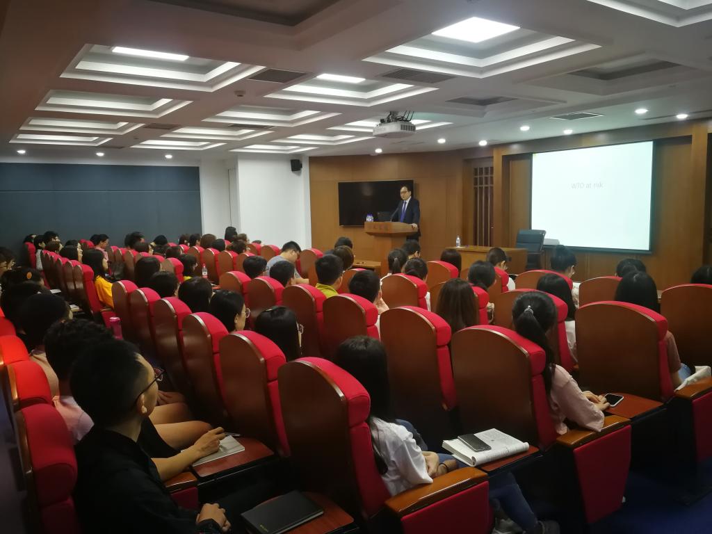 Cheong教授首先介绍了WTO的缺陷和仅有的成绩,并讨论了WTO所能发挥出的作用越来越小。其次,基于多边贸易协定谈判达成的困难程度,Cheong教授阐述了WTO改革和贸易谈判的局限性,并对美国贸易政策进行了评论。再次,基于全球价值链视角Cheong教授解释了贸易发展的动因以及未来发展趋势。然后,Cheong教授分析了当前的WTO体系对东亚区域经济合作产生的影响以及诸如中韩自贸区、中日韩自贸区的发展前景。在最后提问交流环节,Cheong教授对同学们提出的关于中日韩自贸区、中美贸易摩擦等问题进行了详细解答。最后,丁一兵教授对本次报告做了总结。在现场师生热烈的掌声中,本次学术报告圆满结束。