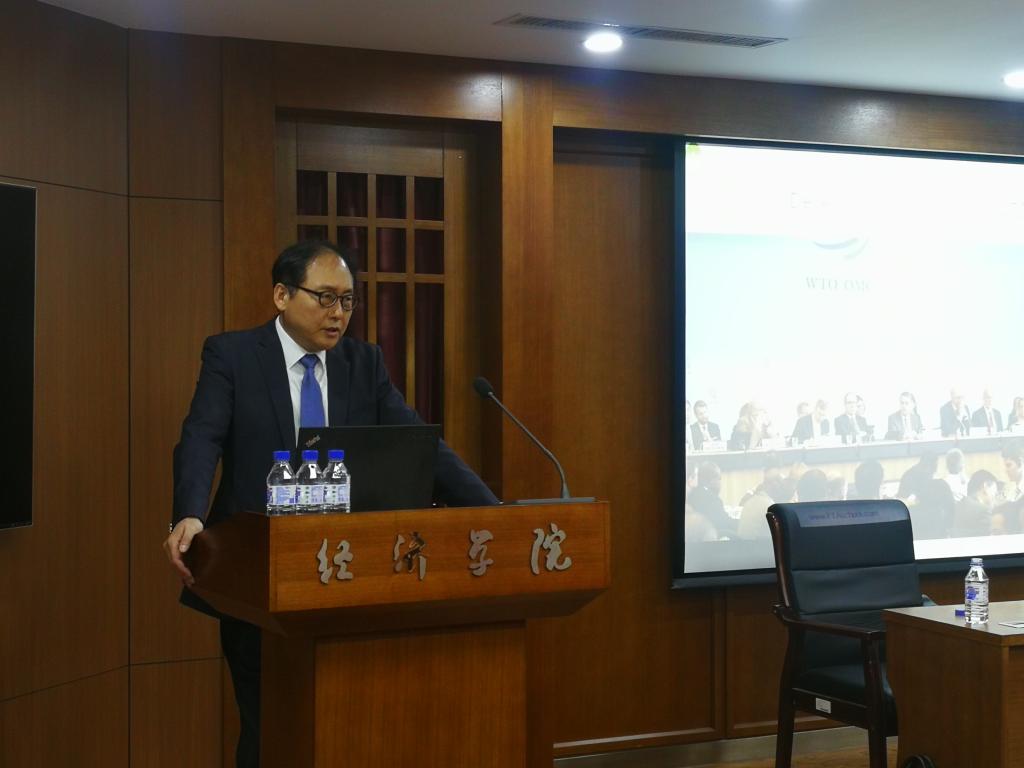8月26日下午,韩国仁荷大学前副校长Inkyo Cheong教授应邀来必赢官网作题为"Uncertainty of the WTO System and Implications for International Trade”的学术报告。Cheong教授研究方向为国际贸易,现担任《 Journal of Korea Trade》(SSCI)主编,韩国国家贸易战略论坛成员、韩国FTA研究论坛主任、韩国国家贸易谈判委员会委员、韩国外交部政策顾问、韩国贸易工业和能源部政策顾问、韩国工商会国际委员会委员、世贸组织DDA/FTA农业谈判组成员。报告由必赢线路检测3003no1必赢线路检测3003副院长丁一兵教授主持,必赢线路检测3003部分教师和研究生参加了此次报告会。