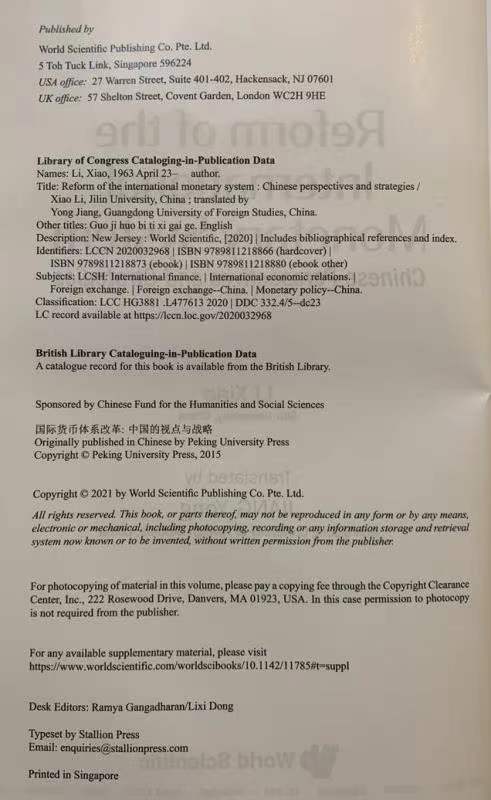 近期,必赢线路检测3003no1必赢线路检测3003李晓教授专著《国际货币体系改革:中国的视点与战略》的英文版“Reform of the International Monetary System: Chinese Perspectives and Strategies”由国际著名的世界科技出版公司(World Scientific Publishing Co. Pte. Ltd.)于2021年7月正式出版发行。