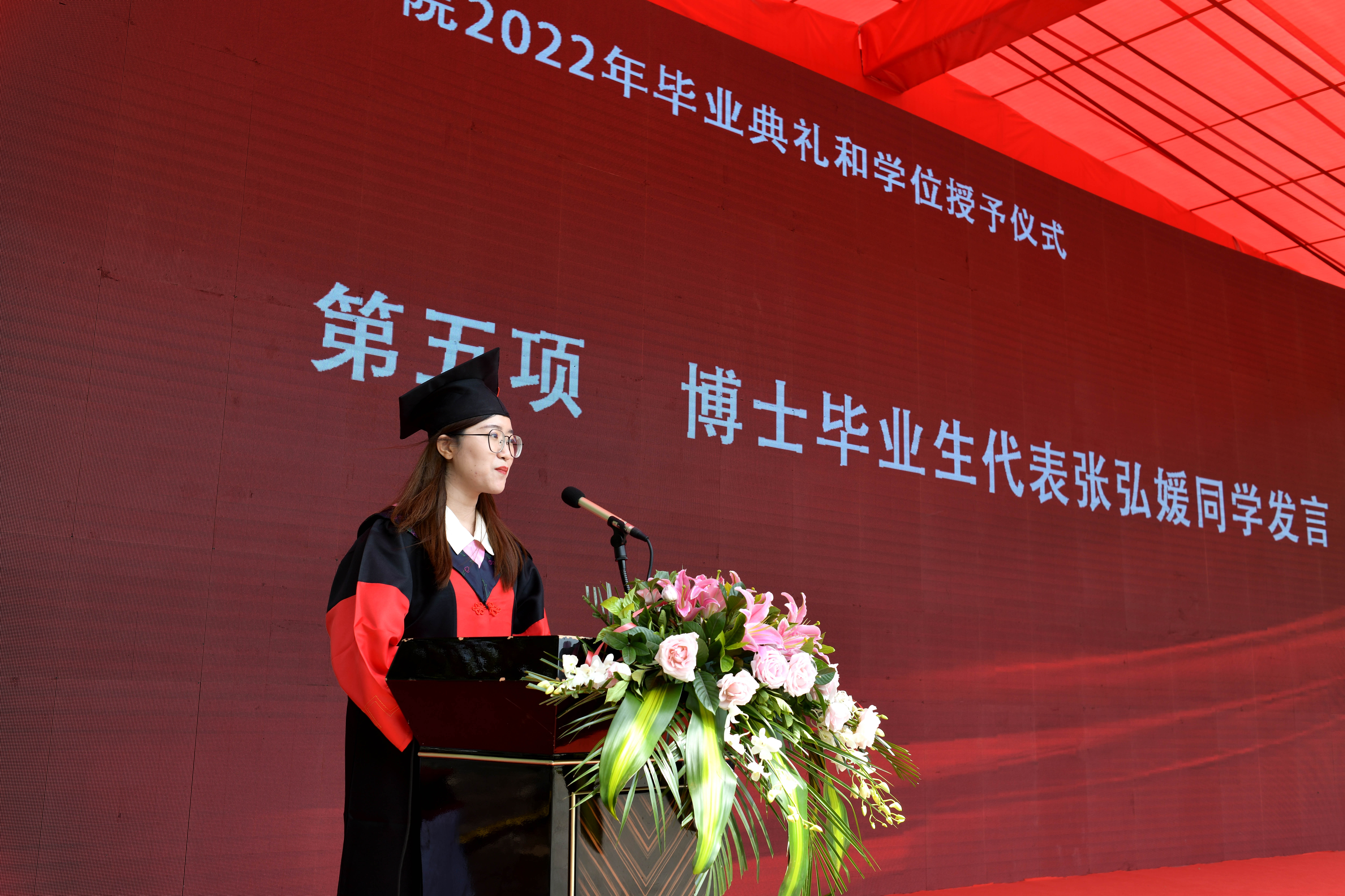 学位授予仪式后,博士毕业生代表张弘媛同学和本科毕业生代表王婧仪同学分别发言,深切真挚地表达了同学们对学院和老师们的感激之情、对同学和朋友们的不舍之情,并表示在今后一定会牢记老师们的谆谆教诲,感念这一段难忘的求学时光。教师代表周佰成教授向毕业生们送上老师们的嘱托与期望,鼓励大家在未来不断奋斗,积极进取。