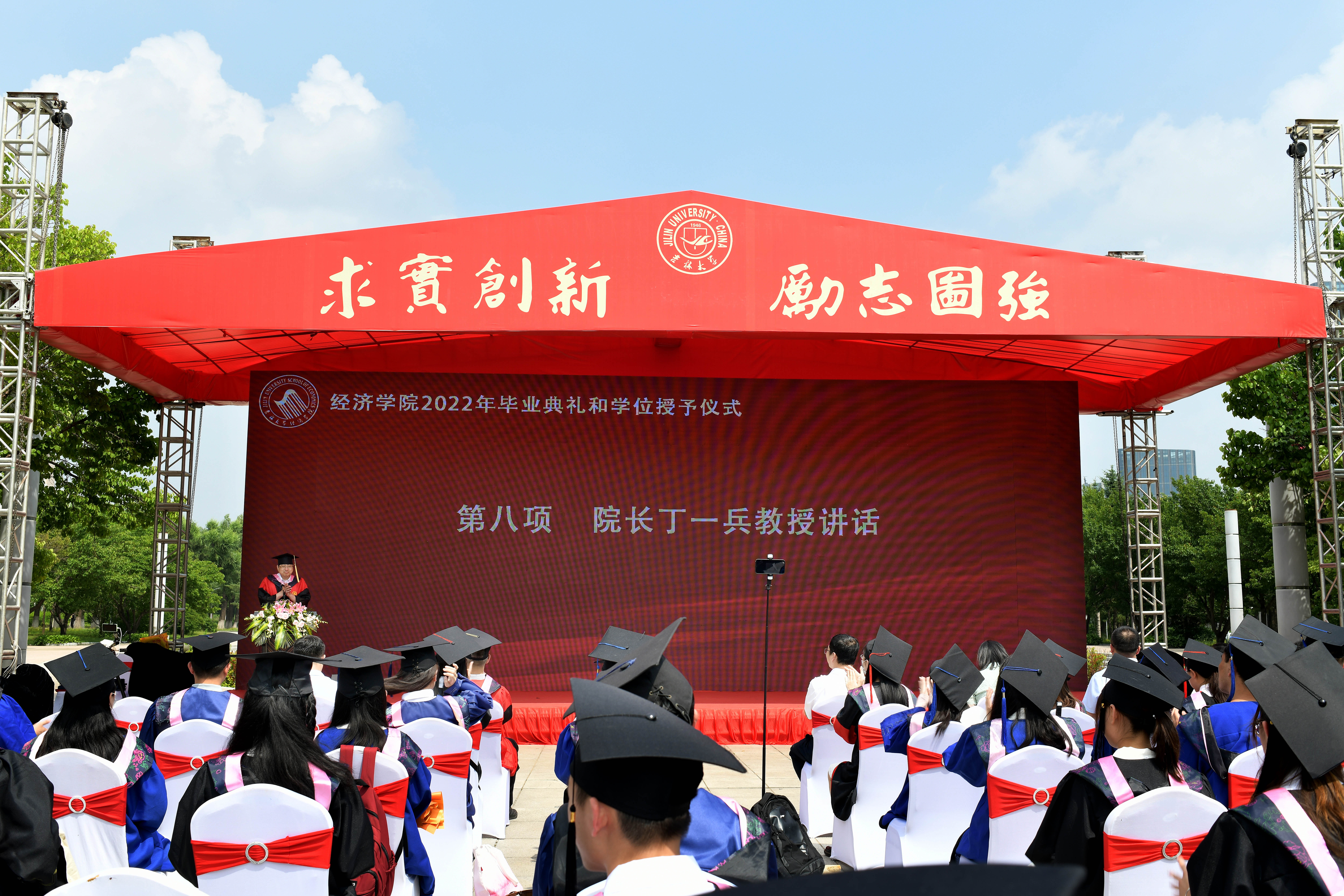 最后,院长丁一兵教授致辞。他代表必赢线路检测3003对2022届全体毕业生刻苦努力、积极奋进的学习精神表达了高度的赞扬;对辛勤耕耘的老师和无私奉献的家长以及长期以来支持学院发展的广大校友和各方贤达致以崇高的敬意和衷心的感谢。在讲话中,丁一兵院长也对毕业生们提出了期望,他希望同学们在不断推陈出新的时代里坚持终身学习、保持坚韧包容的品质、踔厉奋发,用理想引领人生。他希望同学们在各个领域勇挑时代重担,在困难面前永葆热情和干劲,在青春的赛道上奋勇争先,秉持“兼容并举 经世济民”的情怀,为民族伟大复兴事业奋勇前行。毕业典礼和学位授予仪式在激昂的校歌声中落下帷幕。