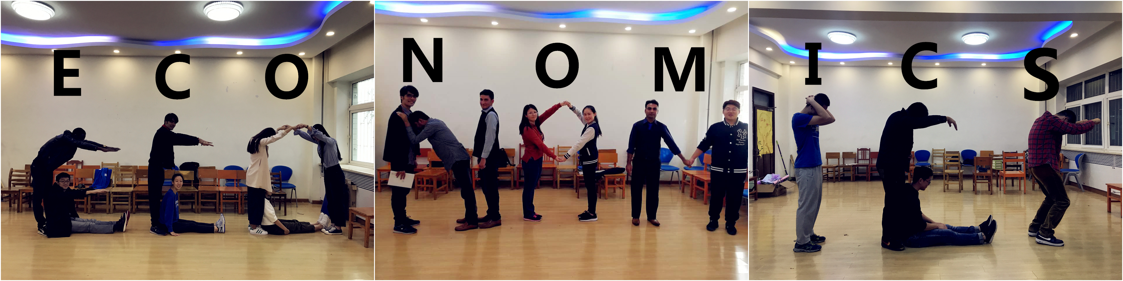 活动开始前,张嫚玲同学向大家介绍了本次活动的目标以及团体心理辅导的重要性。为了充分调动大家的积极性和参与性,团体辅导活动分为三个阶段渐进式展开。第一阶段为热身阶段,通过“一分钟鼓掌”、“我知道”等环节,让大家彼此充分的认识和了解,并在“一分钟鼓掌”这一环节中鼓励同学们在自己的研究生生涯中设立合理的预期,朝着心中的目标一路坚持到底,通过实际行动实现自己的目标。在“我知道”这一环节中,各组同学和留学生聊得非常开心,大家更快认识了彼此,感情迅速升温。第二阶段是过渡阶段:“信任之旅”由一人蒙着眼睛,另一人作为引领者,带领看不到光亮的人顺利通过障碍,体会和感受信任与扶持的力量,在这一环节中认错领路人的同学还为大家进行了才艺表演,本环节在歌声中结束。接下来的“人椅破冰”、“集体登陆”、“快乐传递”等环节让大家体会到团队的力量,感受集体活动的欢乐,我们将“人椅破冰”作为比赛环节,坚持时间最长的可以得到羽毛球拍等体育用品,其他同学也会得到笔记本作为鼓励奖。“人体字母”这一环节,我们选择了经济学的英文,并邀请留学生们和我们一同照相,为了让大家和留学生们更好更快的熟悉,我们还增加了“你比我猜”这一环节,设置了《泰坦尼克》、《阿凡达》等词语让留学生和大家一起表演,第二阶段在一片笑声中圆满结束。第三阶段为“结束阶段”:全体同学共同合力完成班级团体树的制作,留学生同学纷纷留下了“I love china”等留言,最后大家留影留念。
