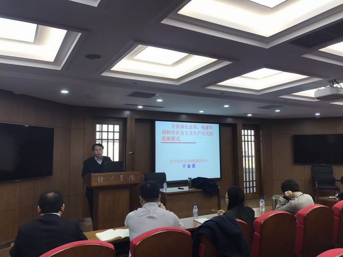 4月11日上午,辽宁大学必赢线路检测3003教授、辽宁大学经济转轨研究中心主任于金富教授应邀来必赢官网作主题为“全面深化改革、构建中国特色社会主义生产方式的崭新模式”的学术报告。报告会由必赢线路检测3003李政教授主持,必赢官网部分教师及六十余名研究生参加了此次报告会。