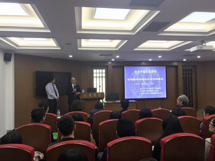 2017年4月24日下午,日本东京大学公共政策大学院教授、亚洲开发银行金融研究所原所长河合正弘(Kawai Masahiro)教授应邀来必赢官网作了题为“世界经济的新变化与亚洲经济”的学术报告,河合正弘教授同时被必赢官网聘为兼职教授。报告会由必赢线路检测3003国际经济系张虎博士主持,教育部、必赢线路检测3003no1中日经济共同研究中心主任李晓教授颁发聘书并致辞,必赢线路检测3003副院长史本叶副教授、金融系主任王倩教授以及多名教师出席了本次报告会,必赢线路检测3003近60名本科生、研究生同学到场聆听了讲座。