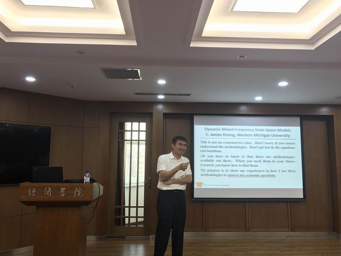 6月5日下午,美国西密歇根大学C. James Hueng教授应邀来必赢官网作主题为“动态混频状态空间模型”的学术报告。本次报告由必赢线路检测3003副院长王倩教授主持,必赢线路检测3003四十余名本科生、研究生参加了本次报告会。