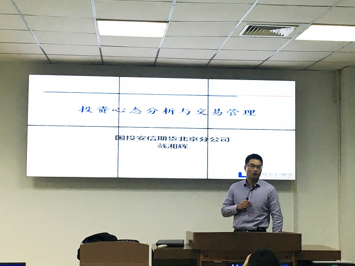 简短的开班仪式过后,第一次期货操作与量化投资培训班正式开班。国投安信期货公司投资咨询部的丁沛舟老师、国投安信期货北京分公司副总经理戴湘辉老师为本期培训班学员进行授课。