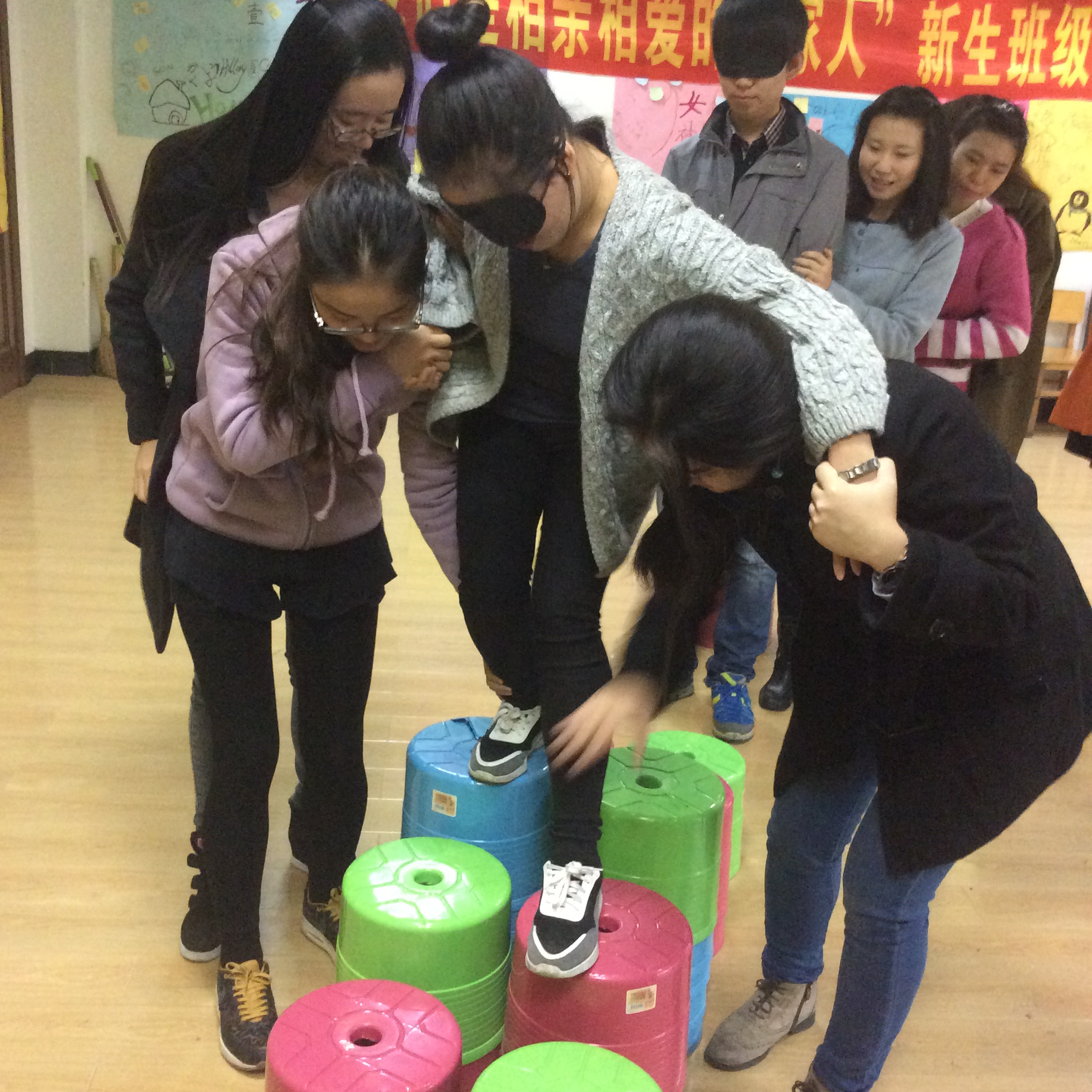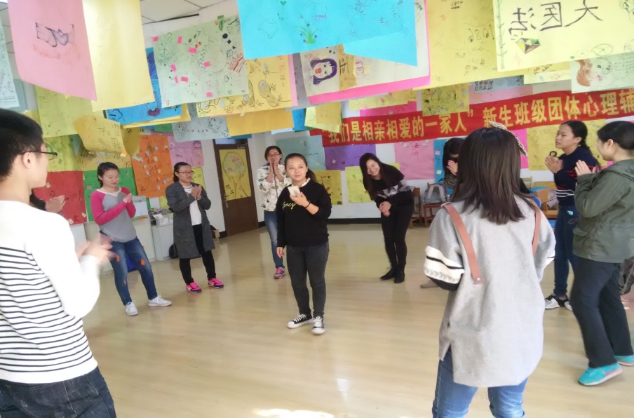 活动主要分为三个阶段,热身阶段、过渡阶段以及结束阶段。在活动开始前,主持人李雯同学先行介绍了“朋辈心理辅导员”的含义,以及心理健康指导中心的存在,让同学们知道在自己有压力时可以找到倾诉的地方。随后,伴随着“1分钟鼓掌”活动的开始,同学们了解到了预期与现实的差异,体会到在实现预期的过程中自己会遇到很多困难,但只要自己坚持下来就会有不少的收获。热身阶段的游戏在进行了温柔体操和无家可归之后便接近了尾声。之后“信任之旅”“集体登陆”“人椅破冰”等游戏将活动推向了高潮,同学们抛开了矜持,全心的投入到了游戏之中,增进了彼此之间的交流,加深了同学之间的友谊。伴随着“相逢是首歌”同学们互相为别人点着赞,在别人的纸上留下了赞美之声,赞美过后便迎来了活动的最后一个环节,同学们以小组的形式完成了“团体树”的绘制。在集体合照之后,活动圆满完成。