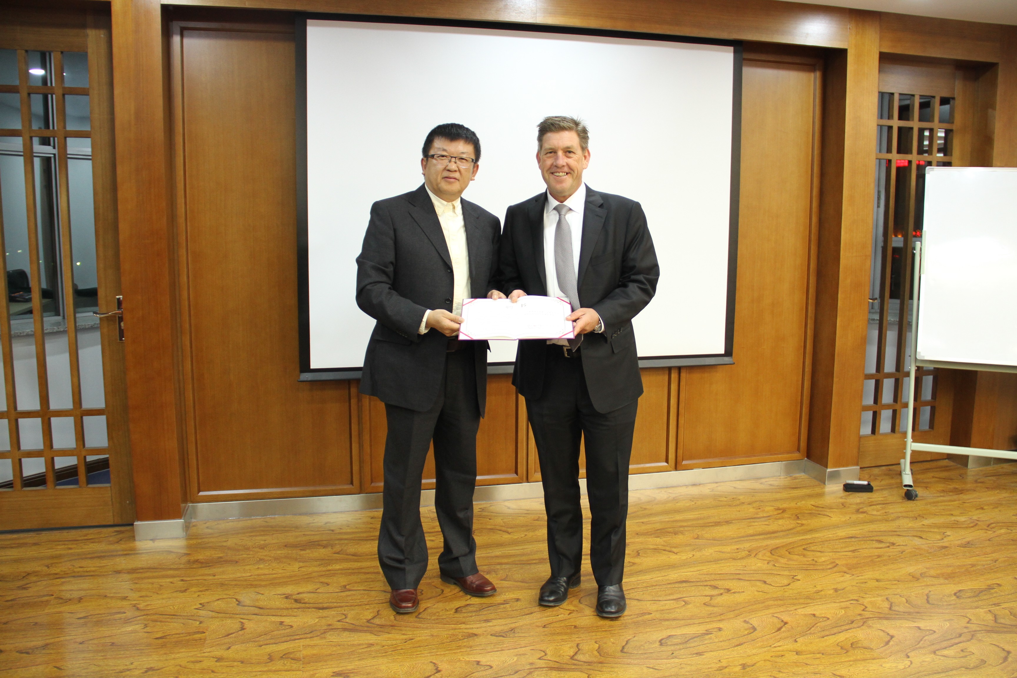 晚上6时30分,聘任仪式暨讲座正式开始。王倩教授首先对Porf. PALMER的到来表示热烈欢迎,并向在场师生简要地介绍了Prof. PALMER的工作经历和科研成果。随后,李俊江院长代表必赢线路检测3003为Prof. PALMER颁发了兼职教授的聘任证书,并发表致辞。