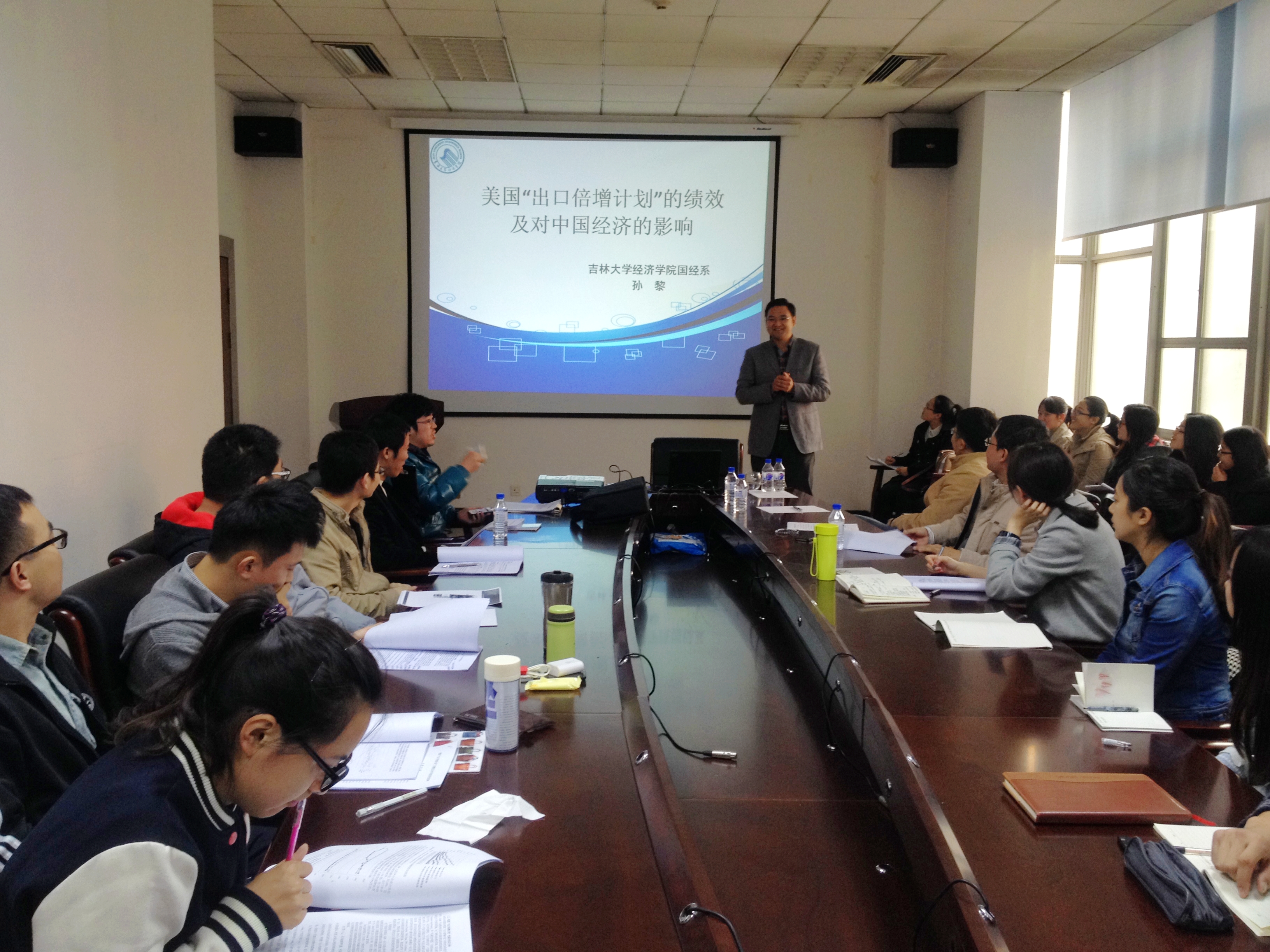 10月14日下午,必赢官网国际经济与贸易系组织了“必赢线路检测3003学术讨论会”第1场研讨活动。此次学术讨论会由国际经济与贸易系讲师孙黎博士主讲,主题为“美国出口倍增计划绩效及对中国的影响”。研讨会由国际经济与贸易系副主任王达副教授主持,史本叶副院长、王倩教授、范硕副教授、张虎博士、海森特博士、许佳编辑等多名教师参加了讨论会并纷纷提出深刻见解。此次讨论会采取自由参会模式,共吸引了院内外30余名师生参加,现场交流活跃,气氛热烈,会议取得了圆满成功。