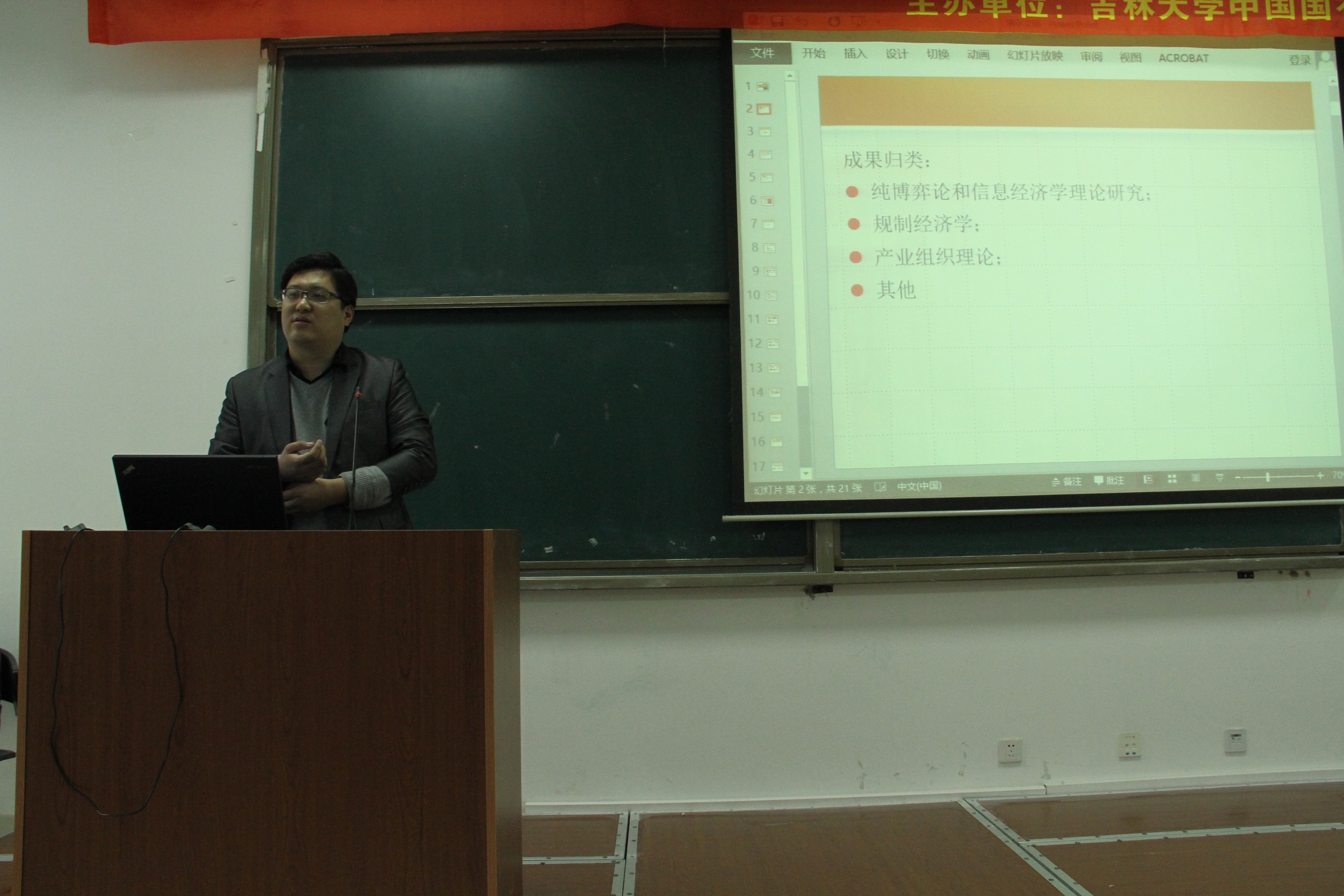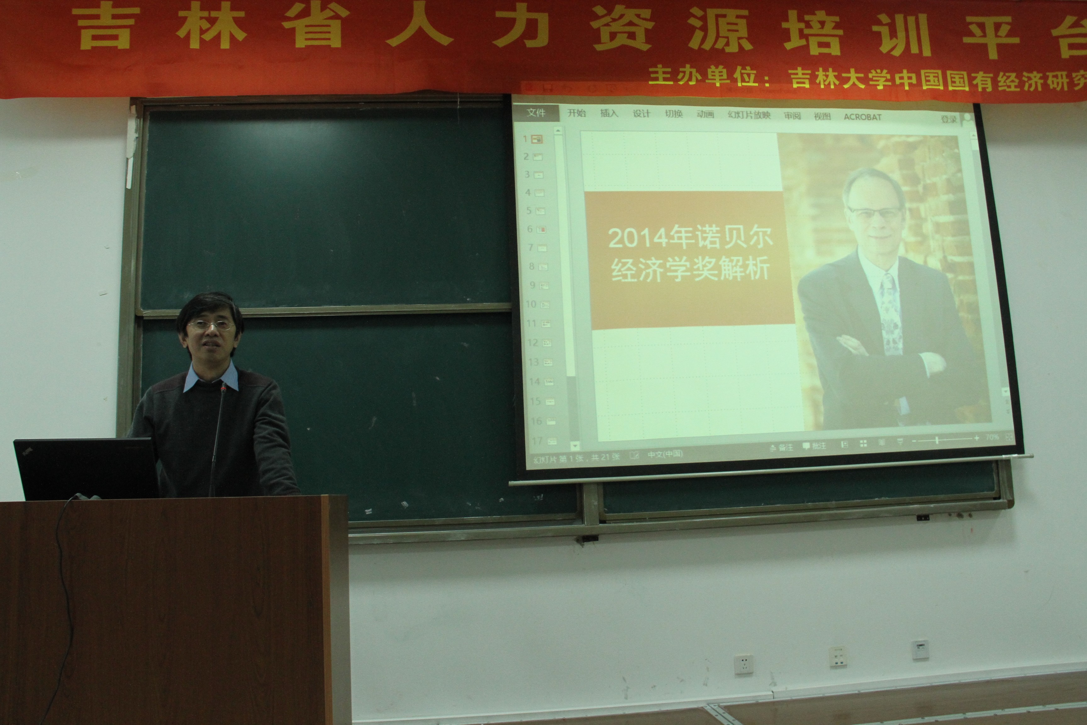 10月24日下午,必赢官网经济系组织了“必赢线路检测3003学术讨论会”第2场研讨活动。此次学术讨论会由经济学系讲师王塑峰博士主讲,主题为“2014年诺贝尔经济学奖解析”。研讨会由经济学系主任马春文教授主持,李政副院长、王倩教授、赵新宇教授、蔡壮副教授、张虎博士、冯永琦博士、刘佳丽博士、王婷博士等多名教师参加了讨论会,并吸引了院内外70余名学生的广泛参与。