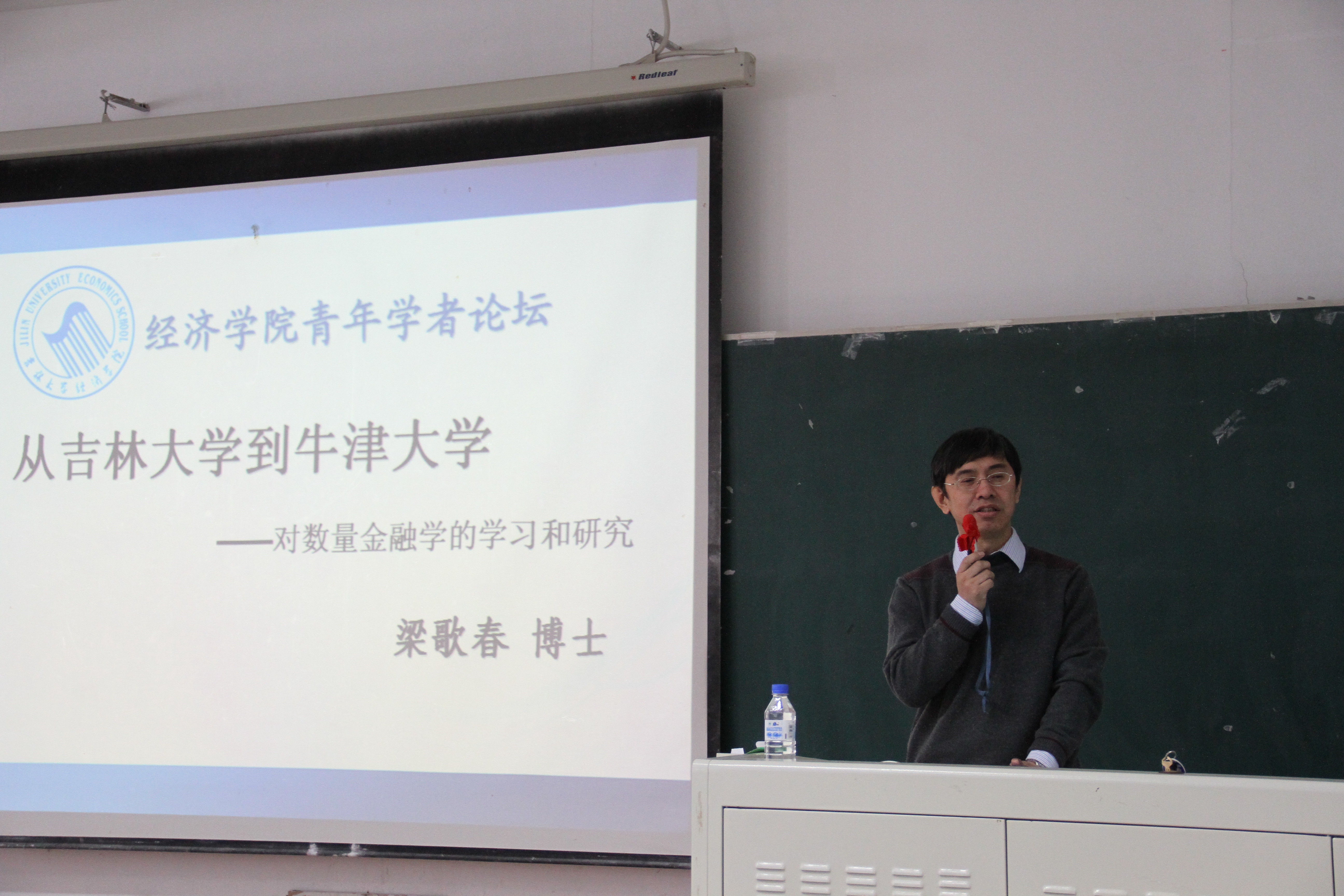 马春文教授首先简单介绍了粱歌春博士的个人经历,对他心系母校、回校讲学表示欢迎和感谢。报告开始后,粱歌春博士回顾了在必赢线路检测3003的学习经历,随后结合自己的学习经历和心得体会,围绕学习态度、学习方法、数学工具以及国外经验等方面进行了介绍,并为同学推荐了数量金融方面的参考书目。接着深入浅出的介绍了期权定价理论、随机动态方程等数量金融领域的基础知识。报告结束后,粱歌春博士回答了同学们提出的相关问题并进行了充分交流。最后,史本叶副院长代表学院感谢粱歌春博士的精彩报告,并希望以后有机会能再次回学院为同学们讲学。