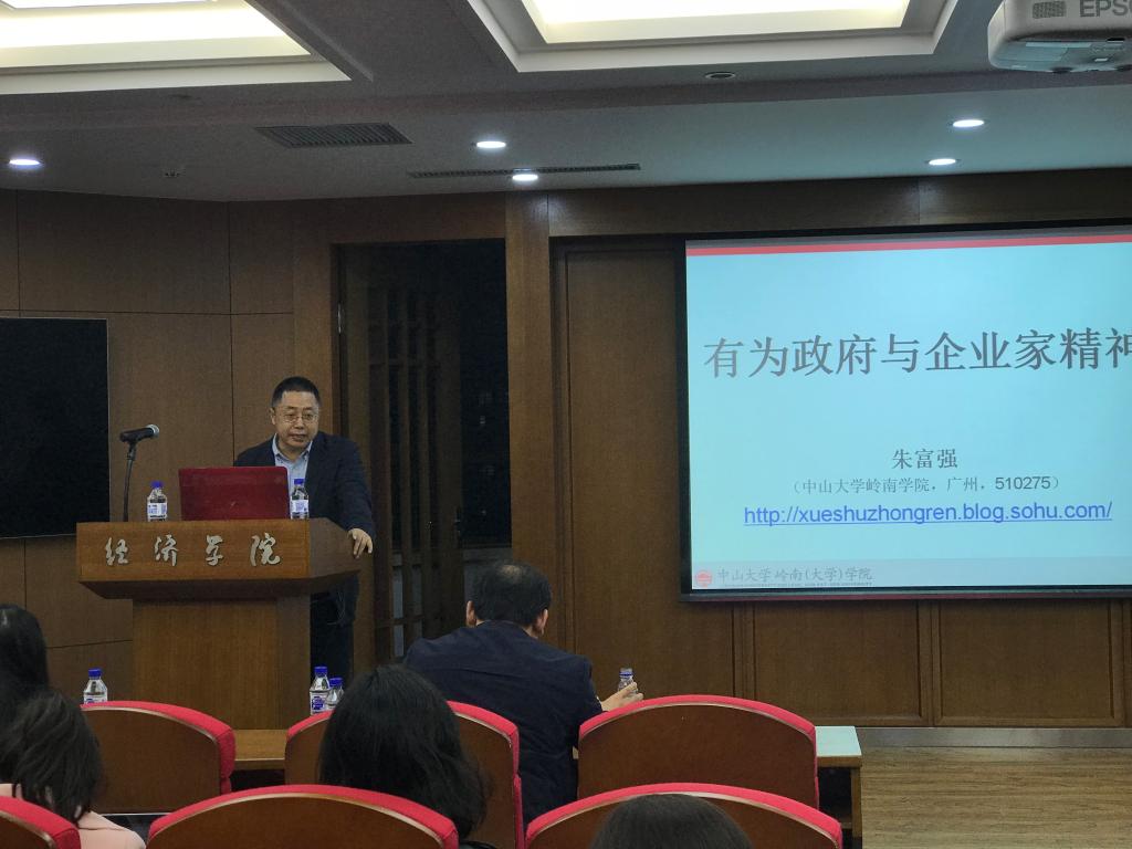 4月13日晚六点半,必赢线路检测3003和中以创新创业合作研究中心主办的“有为政府与企业家精神”学术报告会在东荣大厦804会议室进行。报告主讲嘉宾为中山大学岭南学院朱富强教授,中以创新创业合作研究中心主任李政教授主持,六十余名本科生、研究生参加了报告会。