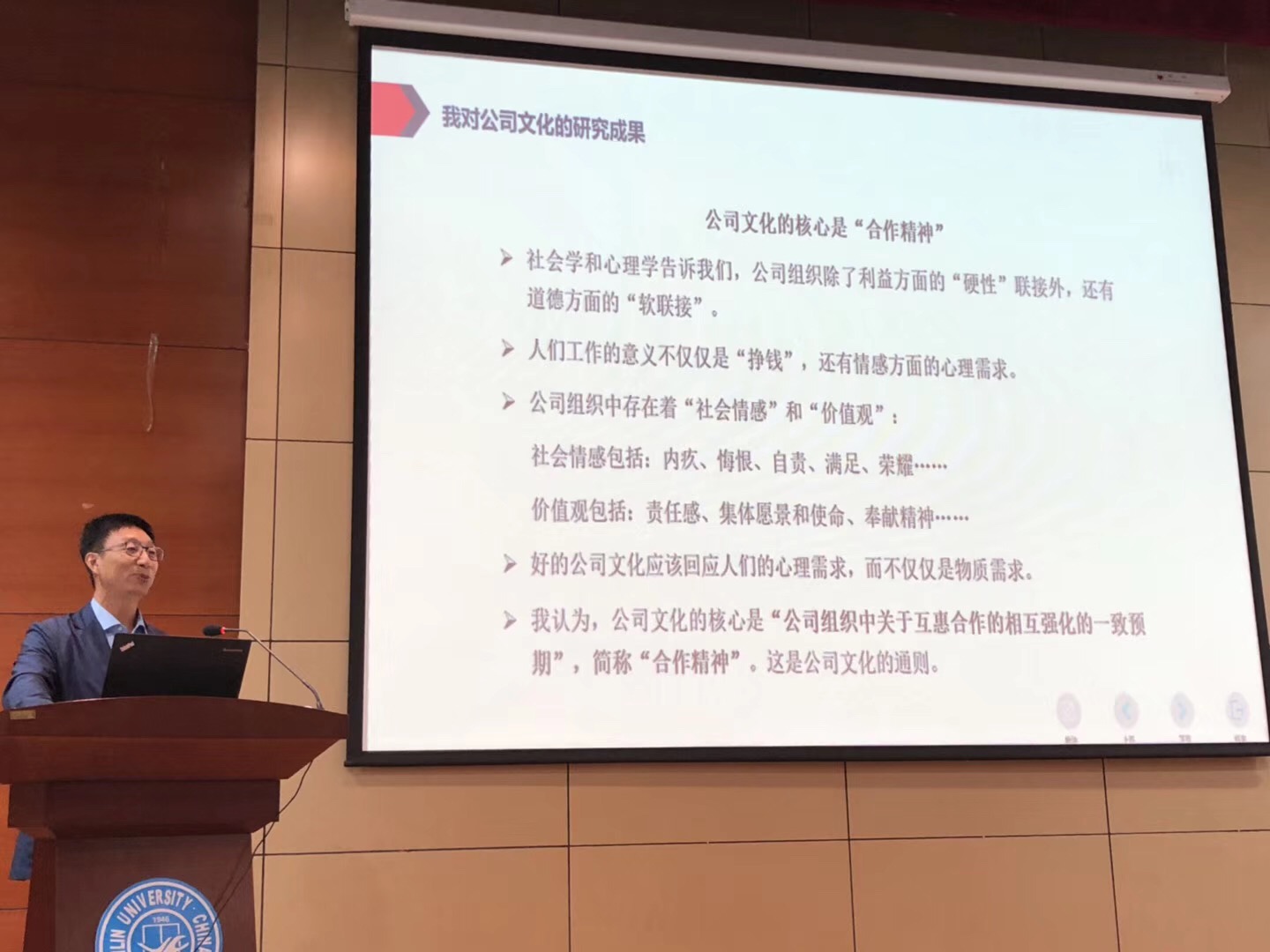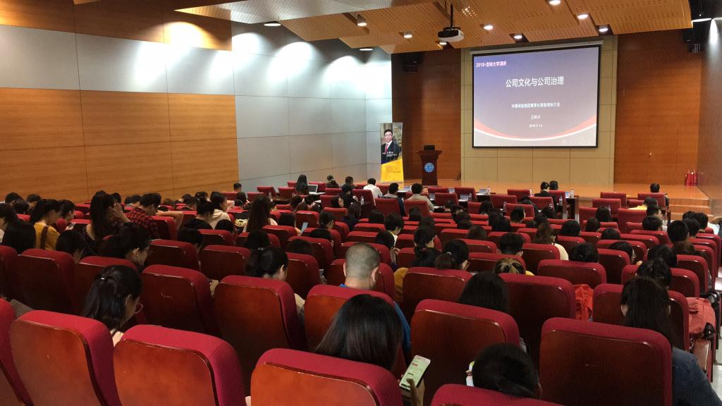 报告开始后,王梓木董事长围绕着公司文化的定义与内涵、公司文化的作用与功能、公司文化创造价值的途径,强调“公司文化的最深处是人性的平等与尊重”,并以华泰保险集团为例,介绍了企业文化发展的制度文化、责任文化、绩效文化、合作文化四个发展阶段,以及各种企业文化之间的相互关系。随后,王梓木董事长介绍了公司文化对公司治理的影响,强调治理是企业生命之本、文化是企业力量之源,公司最后的竞争将归结于公司治理与公司文化的竞争。演讲结束后,现场响起热烈的掌声,部分师生围绕报告主题与王梓木董事长进行了互动交流。