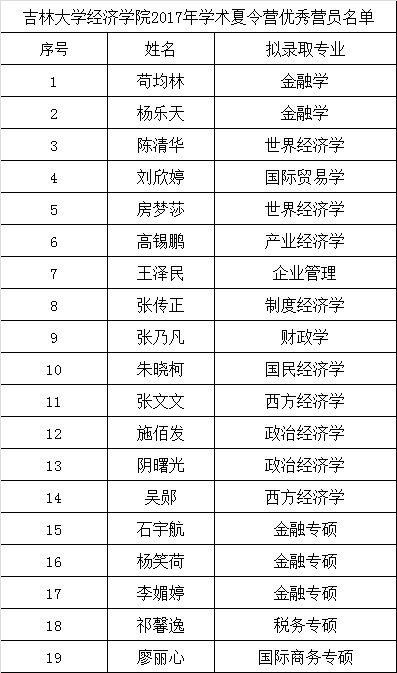 2、经学院夏令营工作小组评审,苟均林等19名营员考核优秀,评为优秀营员。优秀营员名单及拟录取专业详见附件。