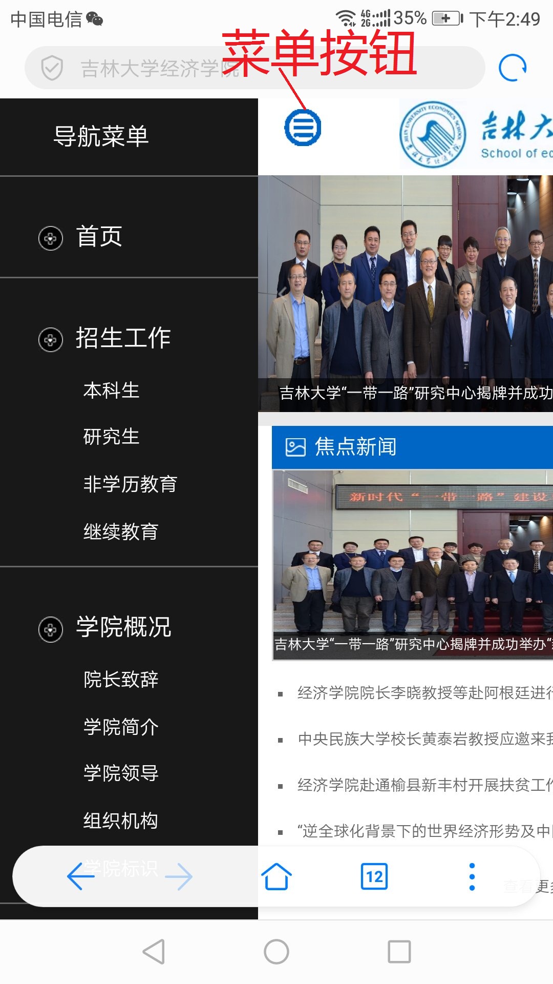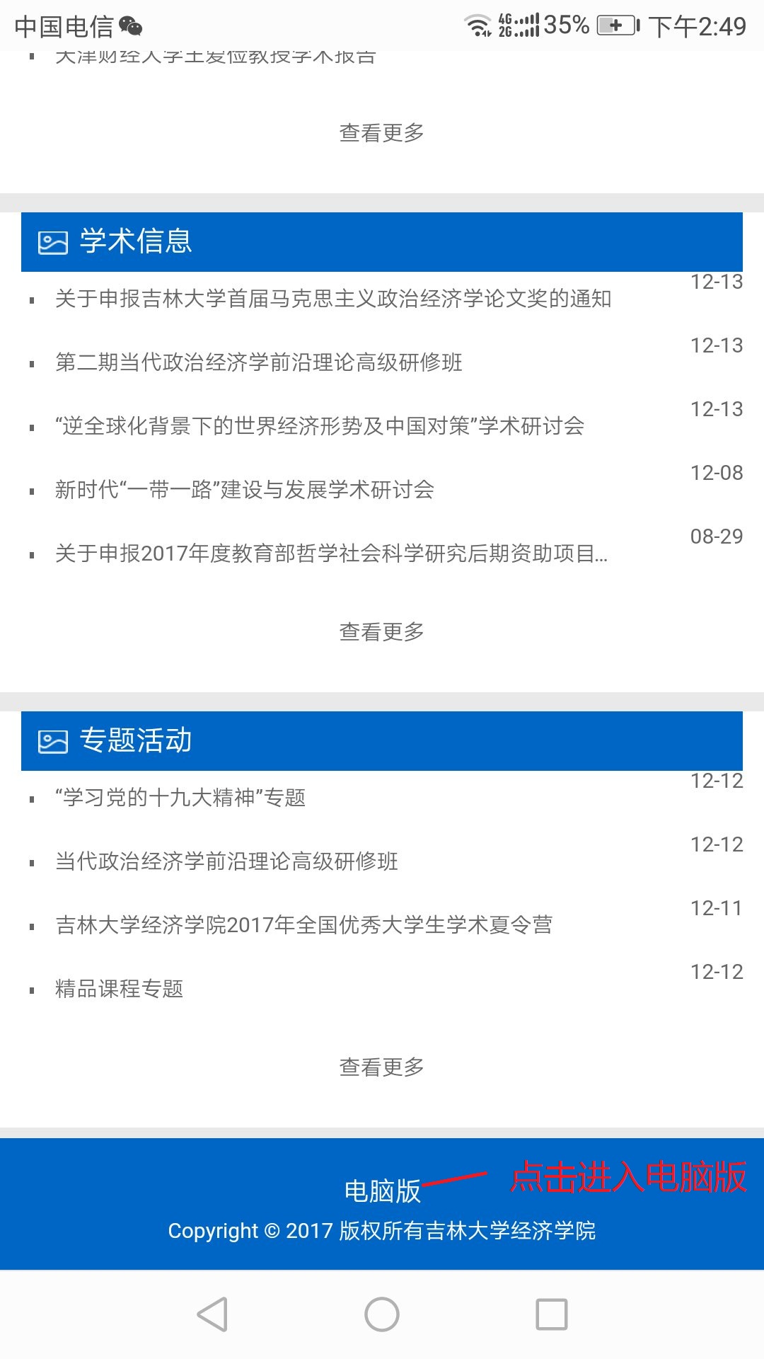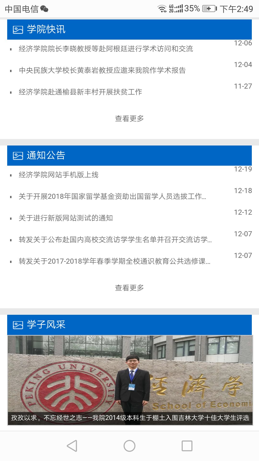 由于系统调用机制与web网站不同,手机版显示的内容和版块与新版网站有所不同或略少。如需查阅更详细内容,可以在手机版网站的底端点击电脑版访问。此外,网站上学生工作栏目转向的菁园网,不在本次手机版调用范围。
