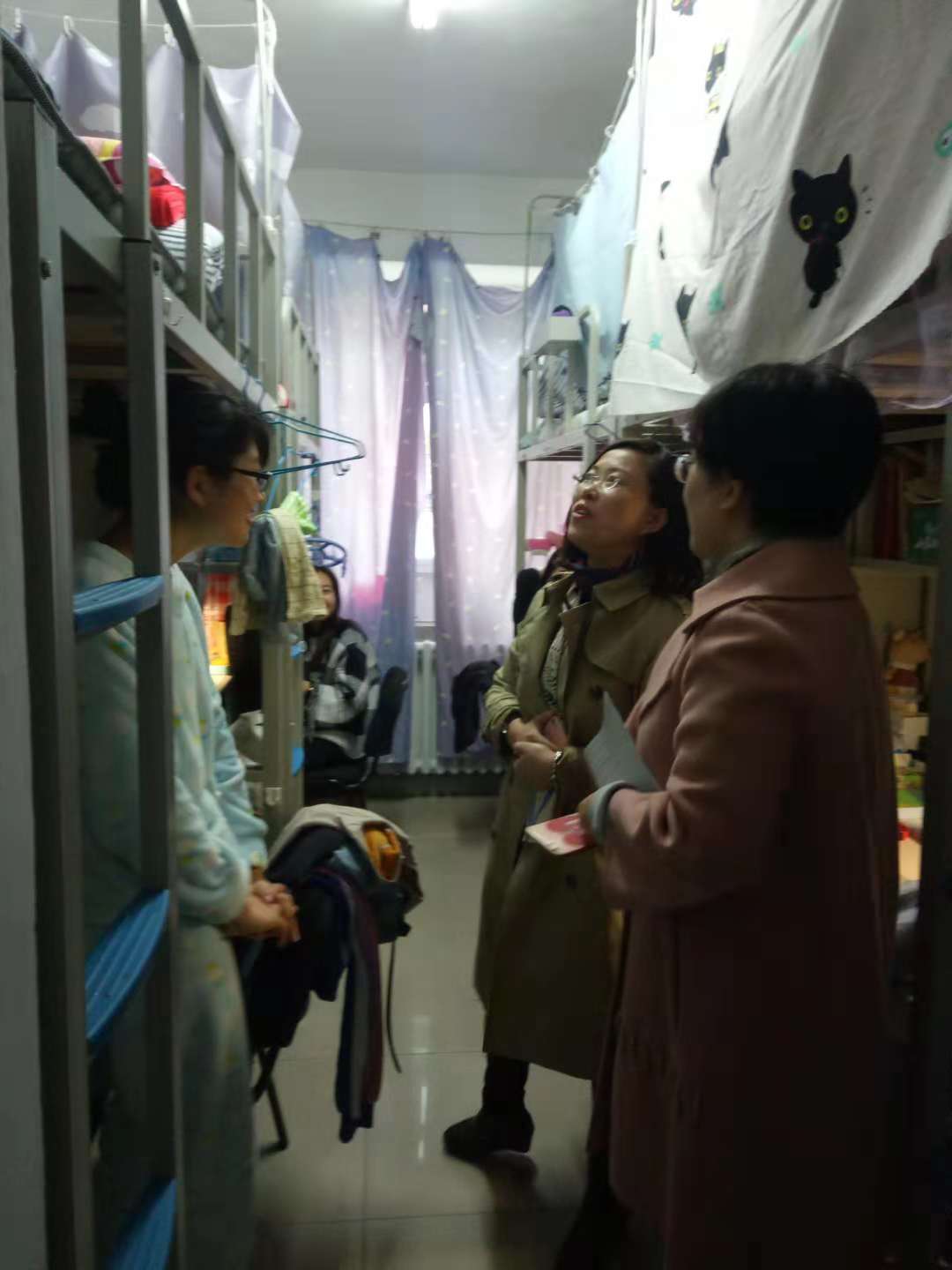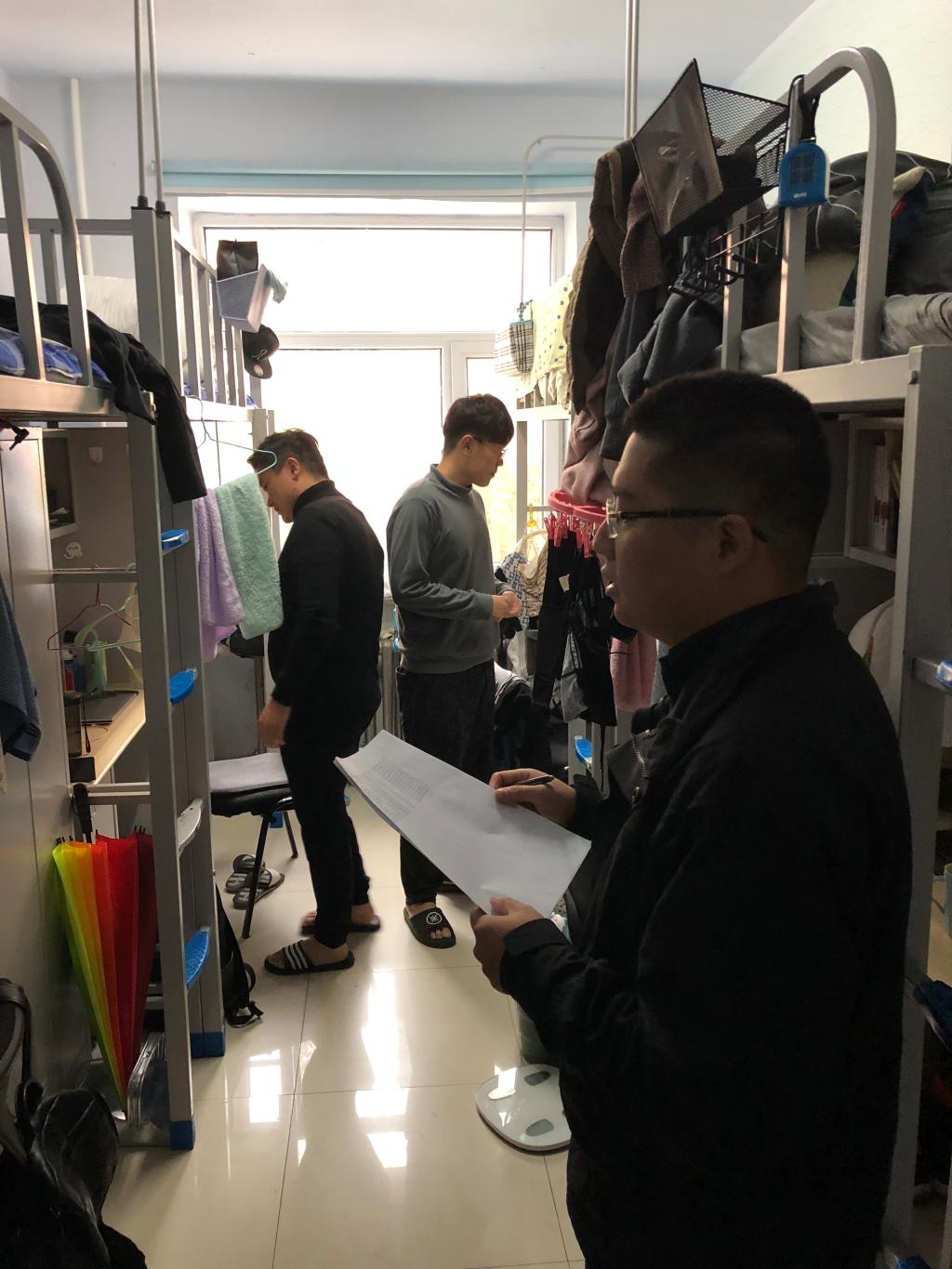 检查组的老师进入同学所在的每一间宿舍,与在寝同学就近期学习生活情况进行亲切交流,关切询问了寝室用水、暖气更换、房间通风等情况,并对是否留宿他人、宿舍卫生、违章电器进行了排查。希望通过这次检查,同学们能够重视宿舍内务卫生,重视宿舍安全,为自己和他人创造一个舒适、优雅的生活环境。