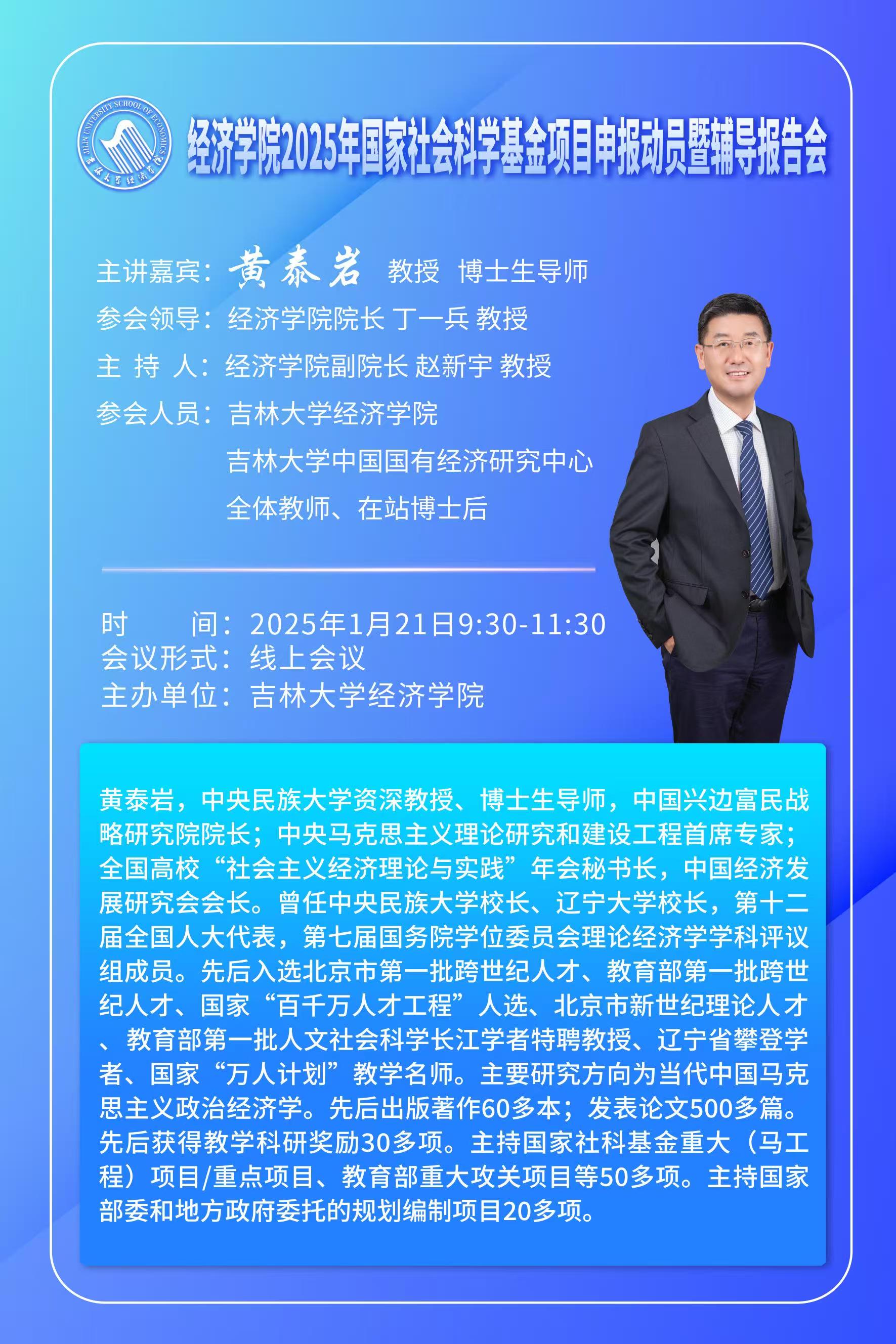 主讲嘉宾简介:黄泰岩,中央民族大学资深教授、博士生导师,中国兴边富民战略研究院院长;中央马克思主义理论研究和建设工程首席专家;全国高校“社会主义经济理论与实践”年会秘书长,中国经济发展研究会会长。曾任中央民族大学校长、辽宁大学校长,第十二届全国人大代表,第七届国务院学位委员会理论经济学学科评议组成员。先后入选北京市第一批跨世纪人才、教育部第一批跨世纪人才、国家“百千万人才工程”人选、北京市新世纪理论人才、教育部第一批人文社会科学长江学者特聘教授、辽宁省攀登学者、国家“万人计划”教学名师。主要研究方向为当代中国马克思主义政治经济学。先后出版著作60多本;发表论文500多篇。先后获得教学科研奖励30多项。主持国家社科基金重大(马工程)项目/重点项目、教育部重大攻关项目等50多项。主持国家部委和地方政府委托的规划编制项目20多项。