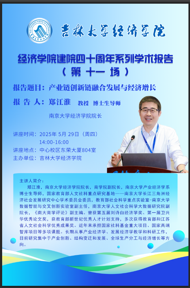 讲座题目: 产业链创新链融合发展与经济增长