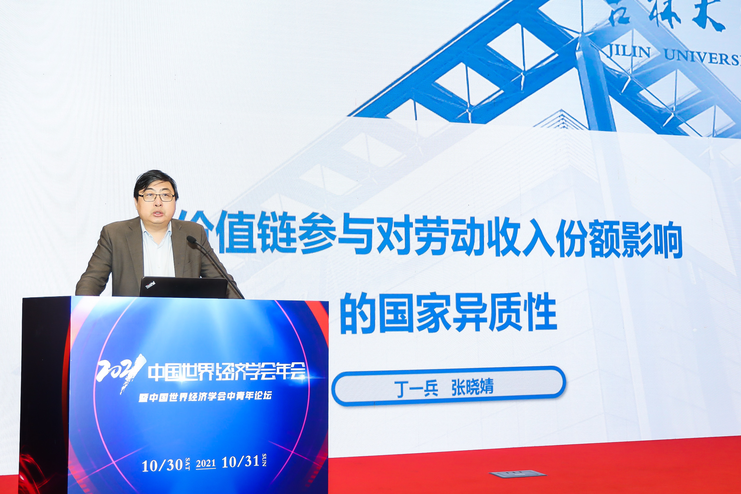 中国世界经济学会副会长、必赢线路检测3003no1必赢线路检测3003院长丁一兵教授受邀做了题为“价值链参与对劳动收入份额影响的国家异质性”的大会主题演讲。在报告中,丁一兵教授首先提出随着全球价值链贸易的快速增长,经济全球化下的收入分配问题凸显,研究劳动收入份额对于实现可持续增长具有重要意义。论文通过建立一个两国家、两要素、两部门的任务贸易理论模型,分析全球价值链分工对劳动收入份额的影响。在实证研究中使用42个经济体46个行业共15年的非平衡面板数据,分析总贸易参与度、全球价值链参与度和传统贸易参与度对劳动收入份额的影响,最后发现全球价值链与劳动收入份额的关系在新兴经济体中是负相关的关系,而在发达经济体中是正相关的关系,这种国家异质性的来源主要是因为任务贸易的生产率影响,其影响主要通过工资的中介机制实现的。丁一兵教授本次会议中还主持了第一分论坛“世界经济格局与‘双循环’”的研讨。