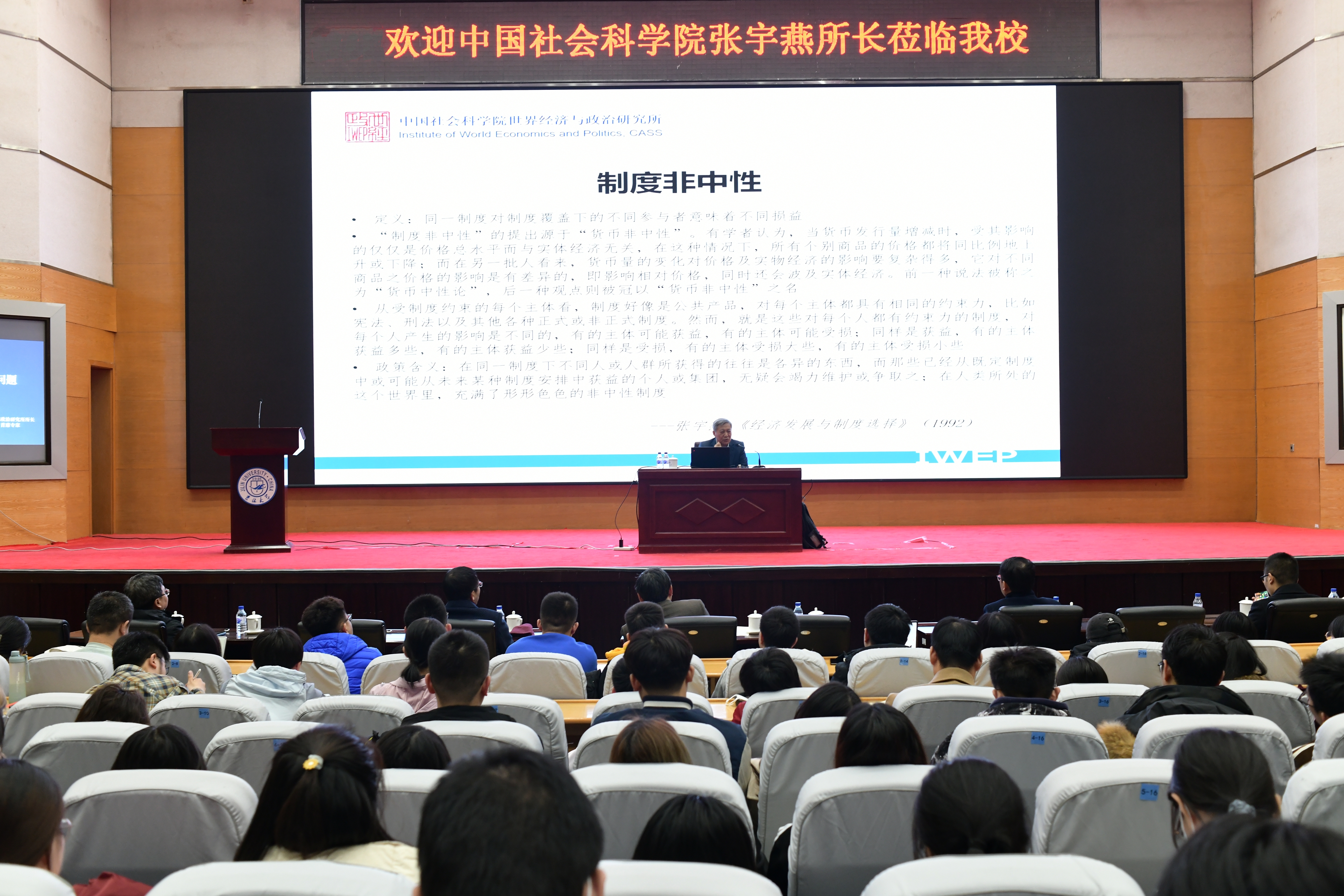 3月23日,中国社会科学院学部委员、中国世界经济学会会长、中国社会科学院世界经济与政治研究所所长、国家全球战略智库理事长与首席专家张宇燕教授受邀来我校作题为“国际经济政治学的方法论问题”的学术报告,报告会由必赢线路检测3003副院长王达教授主持,必赢线路检测3003院长丁一兵教授出席了此次报告会,必赢线路检测3003中青年骨干教师及本科生、研究生近五百人参加此次讲座。