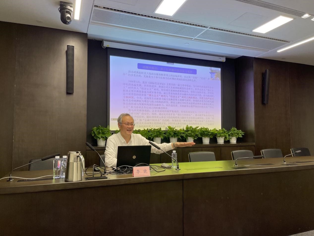 李晓教授首先提出问题:两个世界撞击的历史与现实,指出俄乌冲突的历史与现实逻辑是“金融帝国”与“领土帝国”的冲突。俄乌冲突是美国全球战略的一个重要组成部分,是一场堂而皇之的“阳谋”。这场冲突让世界格局发生重大改变——加速“全球化分裂”,体现了美元体系的金融权力与传统领土主义权力之间的激烈博弈。全球化分裂与逆全球化不同,全球化分裂是世界格局与秩序的“解构”与“重构”。随后,李晓教授重点分析了全球化分裂下的地缘政治陷阱,指出各种显在或潜在的地缘政治冲突将成为全球化分裂的加速器。地缘政治陷阱是中国面临的诸多陷阱之一,中国的发展与可持续崛起必须摆脱地缘政治冲突的陷阱,警惕美国的“全球化分裂”图谋——全球化的“去中国化”。国际货币(体系)演进与人民币国际化,也必须同时避免陷入地缘政治陷阱。