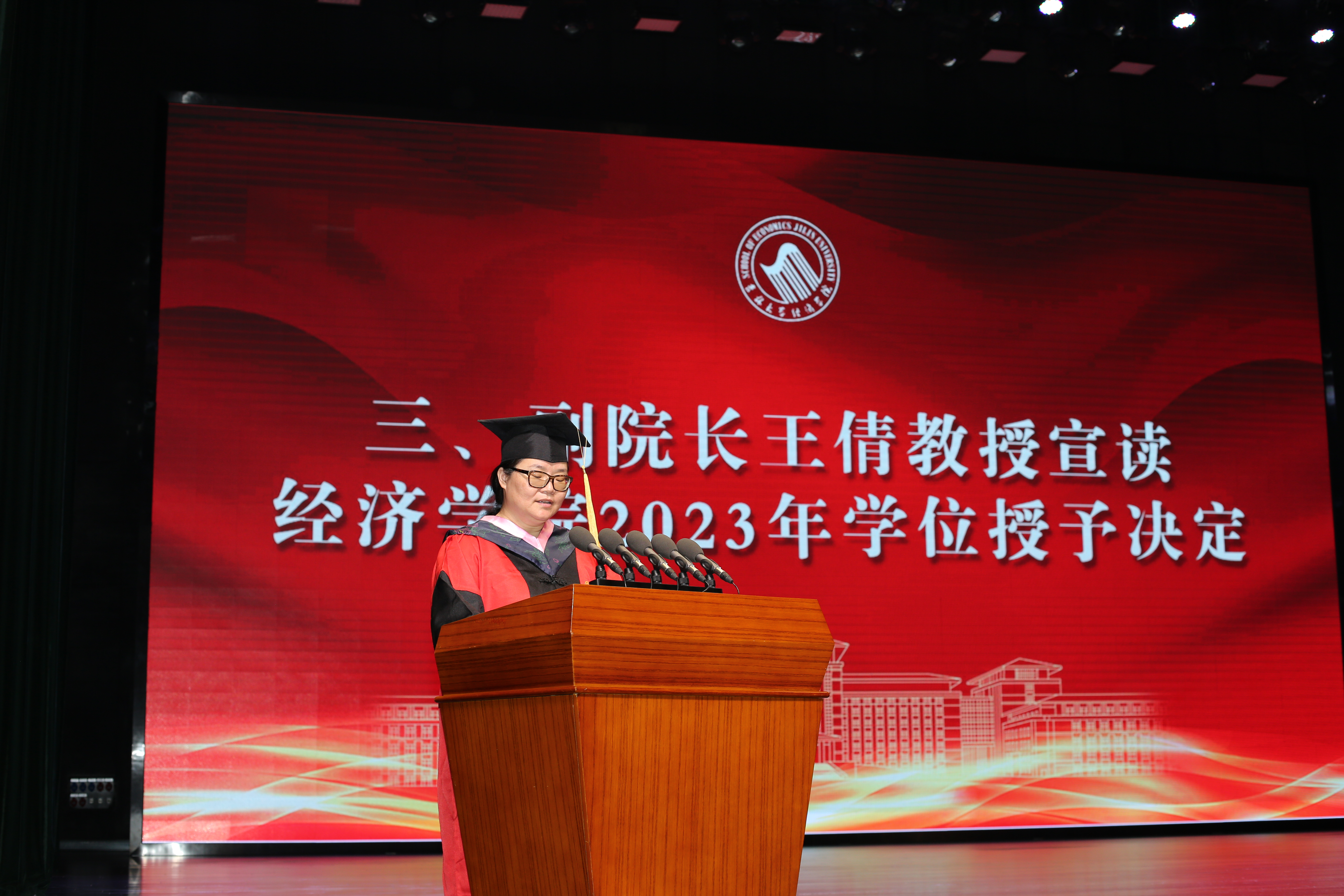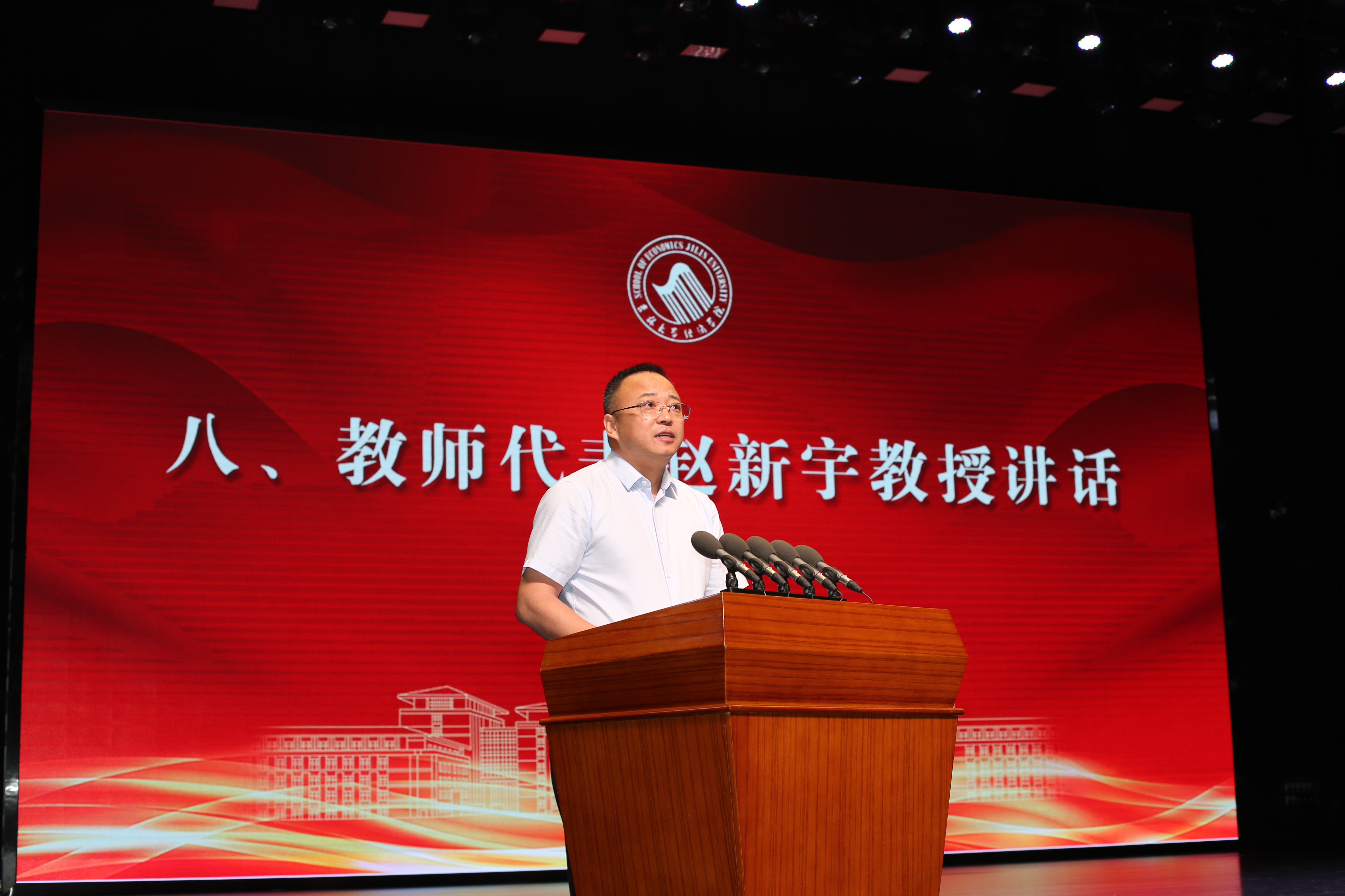 经济学系主任赵新宇讲话寄语毕业生:“要始终相信知识的力量,要始终坚持科学精神,期待大家始终保持奋斗的精神。坚持脚踏实地、主动作为,世上总有美好值得我们全力以赴。必赢线路检测3003永远是大家的温馨家园。”