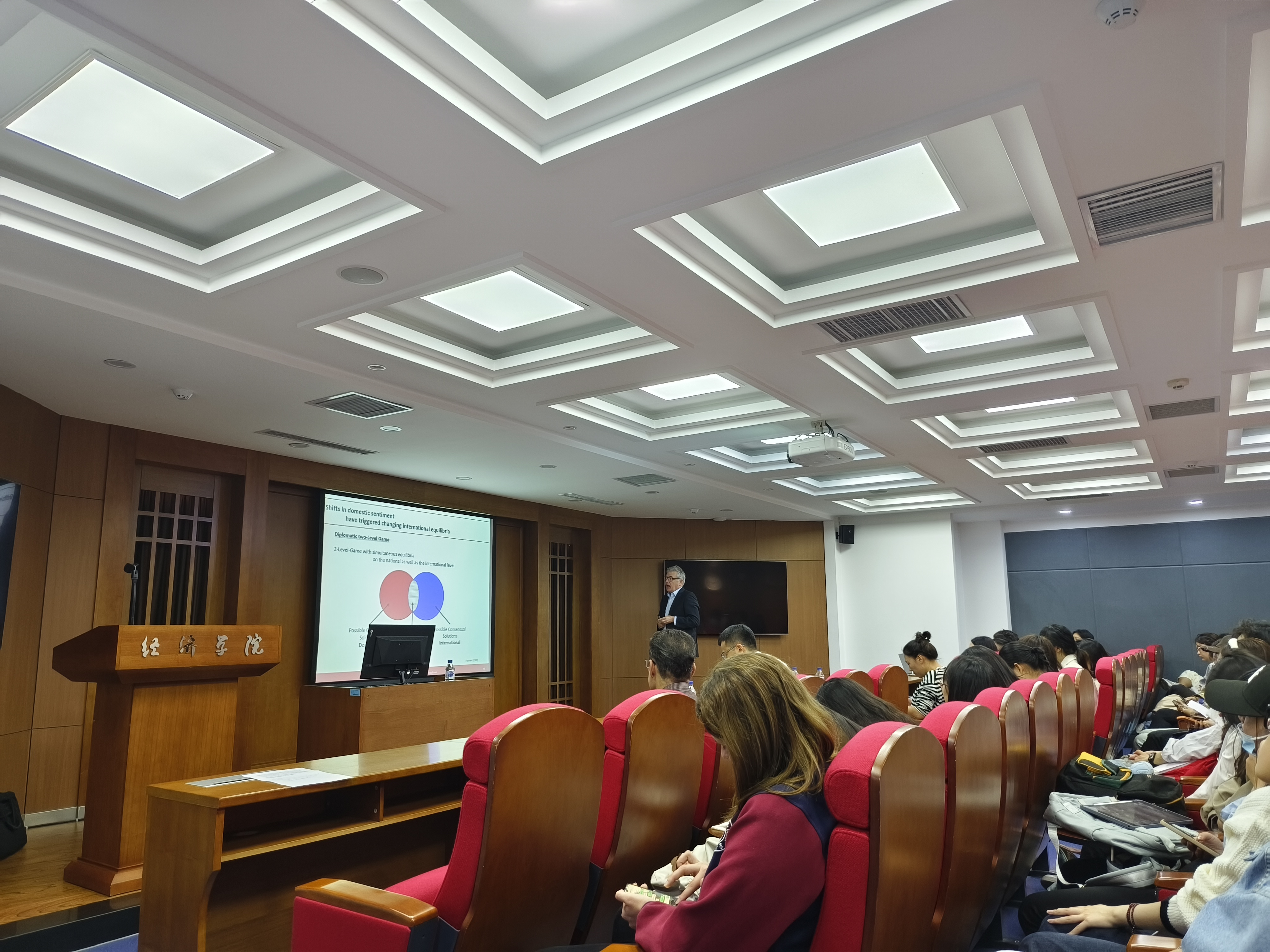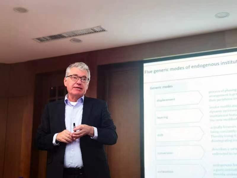 近日,德国杜伊斯堡-埃森大学东亚经济研究讲席教授,麦卡托管理学院教授,东亚研究中心副主任、鲁尔都市孔子学院德方院长Markus Taube教授受邀来我校必赢线路检测3003交流访问,并于9月21日上午为必赢线路检测3003师生作题为“Endogenous institutional change and Strategic Interests among nations”的学术报告。报告会由必赢线路检测3003院长丁一兵教授主持,必赢线路检测3003教师及研究生数十人参加此次报告。