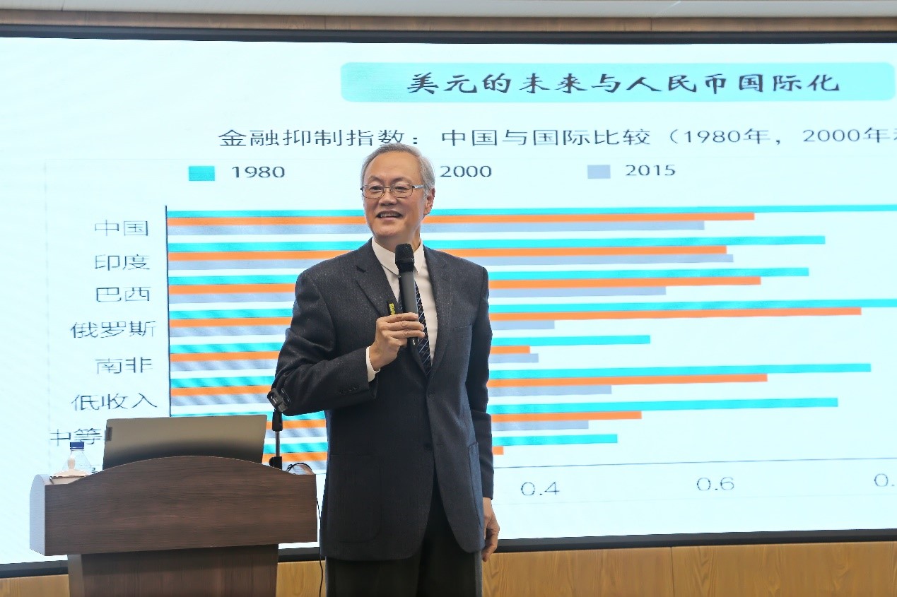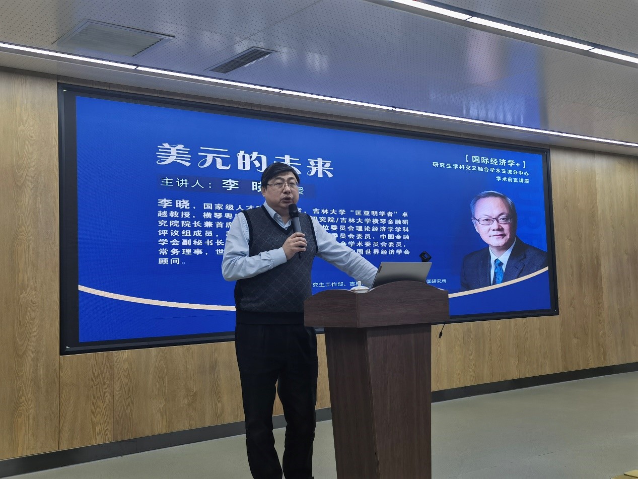 2023年12月5日,必赢线路检测3003no1必赢线路检测3003李晓教授应邀在东荣大厦B215报告厅作了题为“美元的未来”的学术报告。本次报告是必赢线路检测3003no1研究生学科交叉融合“国际经济学+”学术交流分中心前沿讲座的首场讲座,也是必赢线路检测3003no1美国研究所的系列讲座之一,由必赢线路检测3003no1研究生工作部、必赢线路检测3003、美国研究所主办。必赢线路检测3003党委书记聂宏凯、院长丁一兵出席了报告会,必赢线路检测3003教师、研究生、本科生等160余人参加了报告会。必赢线路检测3003no1美国研究所所长史本叶教授主持报告会。