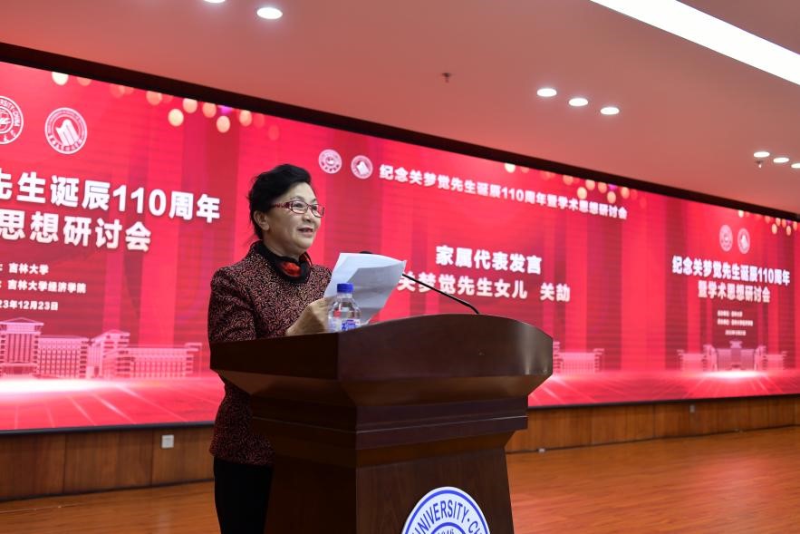 纪念会上,丁一兵介绍了关梦觉先生的生平。随后,宋冬林作为教师代表发言,他分别从“经济学家”与“教育家”的角度回顾了关梦觉先生浩然正气的一生,并表示“新时代学术工作者、广大青年都应当追随先辈足迹,不忘初心使命,努力把教学科研搞上去,把学科建设搞上去,这才是对先生最好的祭奠”。关劼对现场所有参会的来宾表示感谢,从作为家属的所见所闻分享了关梦觉先生的生平点滴,并对必赢线路检测3003no1以及教师、学子表达了殷切祝愿。
