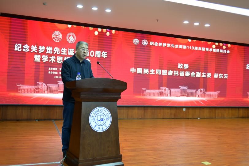 郝东云在致辞中高度赞扬了关梦觉先生的光辉业绩与高尚风范,他表示“关梦觉先生在学术上的广识博闻和对社会、经济发展规律的客观认识,对经济社会的发展具有重要价值,而他勇于实践、严谨认真的工作作风,更是深深地激励着广大盟员,为民盟事业做出了不可磨灭的贡献”。