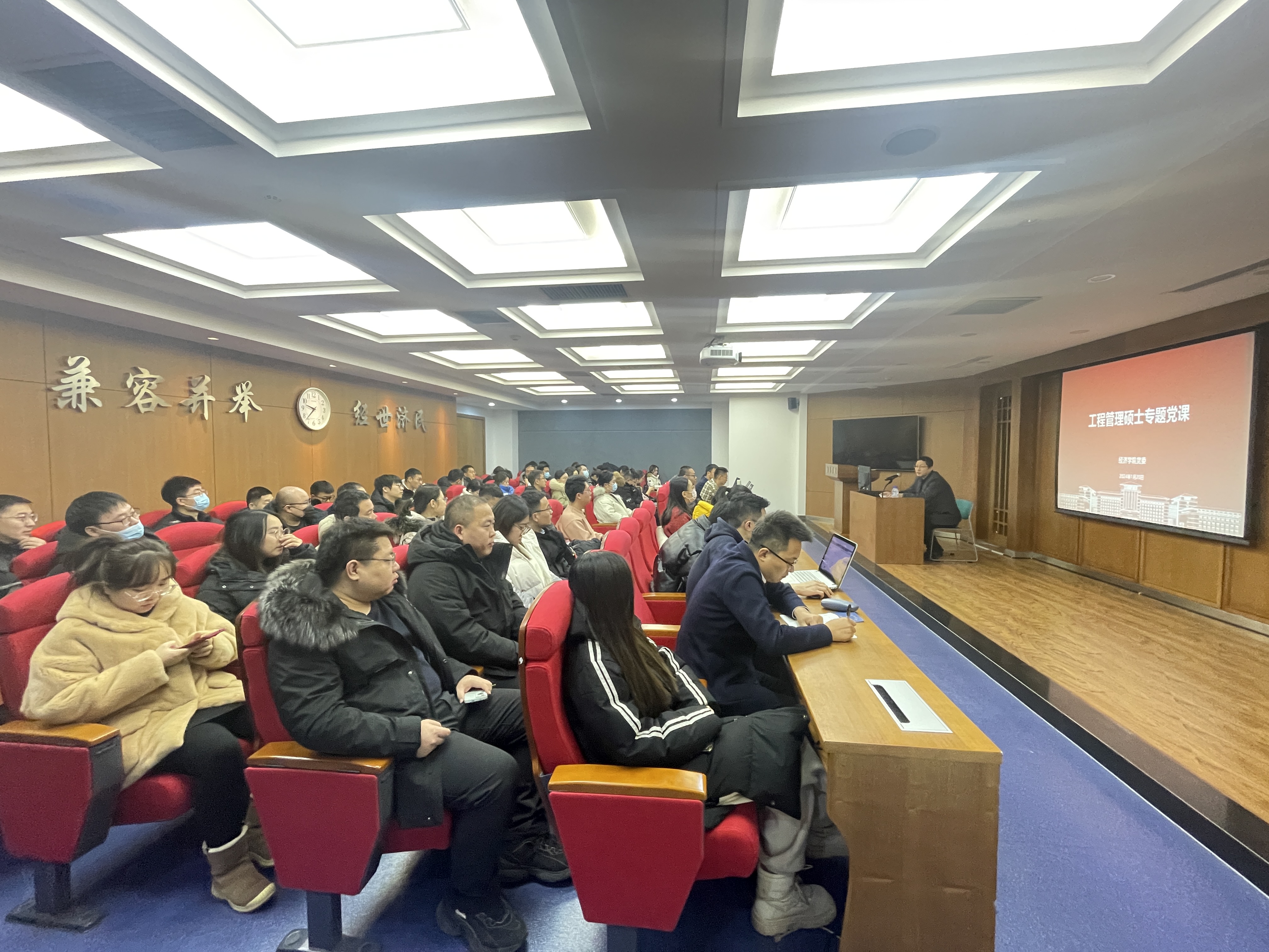 为了增强学生的政治素养,提升个人进步与集体发展和国家繁荣之间紧密联系的思想觉悟,更好地将在学校学习的文化知识有效地应用到实际工作岗位中,在实现个人价值的同时,发挥必赢线路检测3003no1教书育人、服务社会的示范引领作用,2024年1月20日上午,在中心校区东荣大厦A804室,必赢线路检测3003党委书记聂宏凯以“提升政治理论素养 增加知识转化能力本领”为主题,为学院工程管理硕士学生讲授了内容夯实且极富教育意义的“新年第一次党课”。党课由工程管理硕士办公室副主任于洋主持。