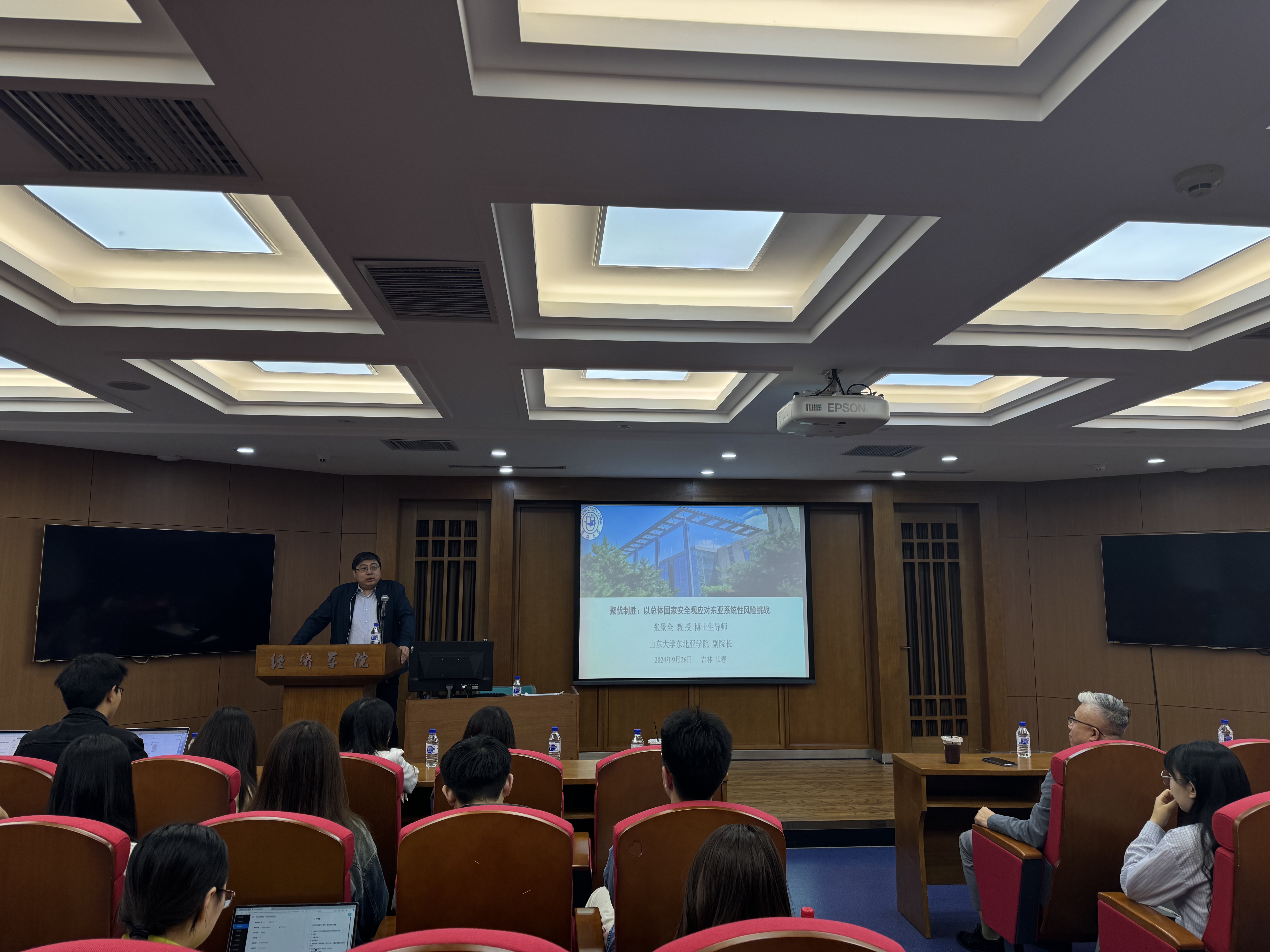 9月26日,山东大学东北亚学院副院长张景全教授受邀来必赢官网作题为“聚优制胜:以总体国家安全观应对东亚系统性风险挑战”的学术报告,报告会由必赢线路检测3003院长丁一兵教授主持,必赢线路检测3003、东北亚学院部分教师、研究生以及国家发展与安全研究院研究生等近百人参加此次讲座。