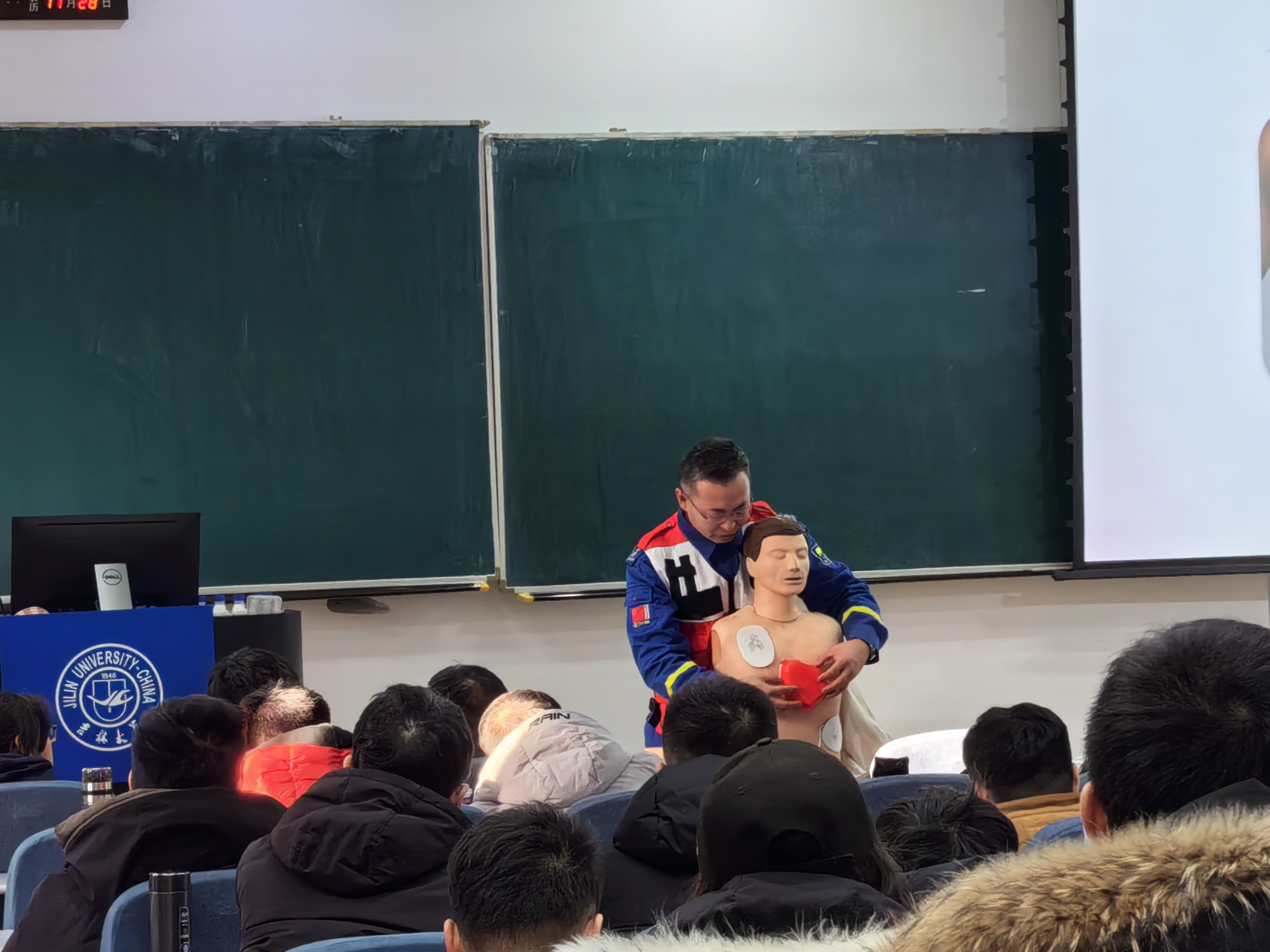 此次校园行活动在刘屹教官开设的讲座中拉开序幕,他通过生动的理论讲解和实践操作,向同学们传授了急救的基本知识和技能,引导同学们深入了解急救医学的重要性以及院前急救的关键环节。