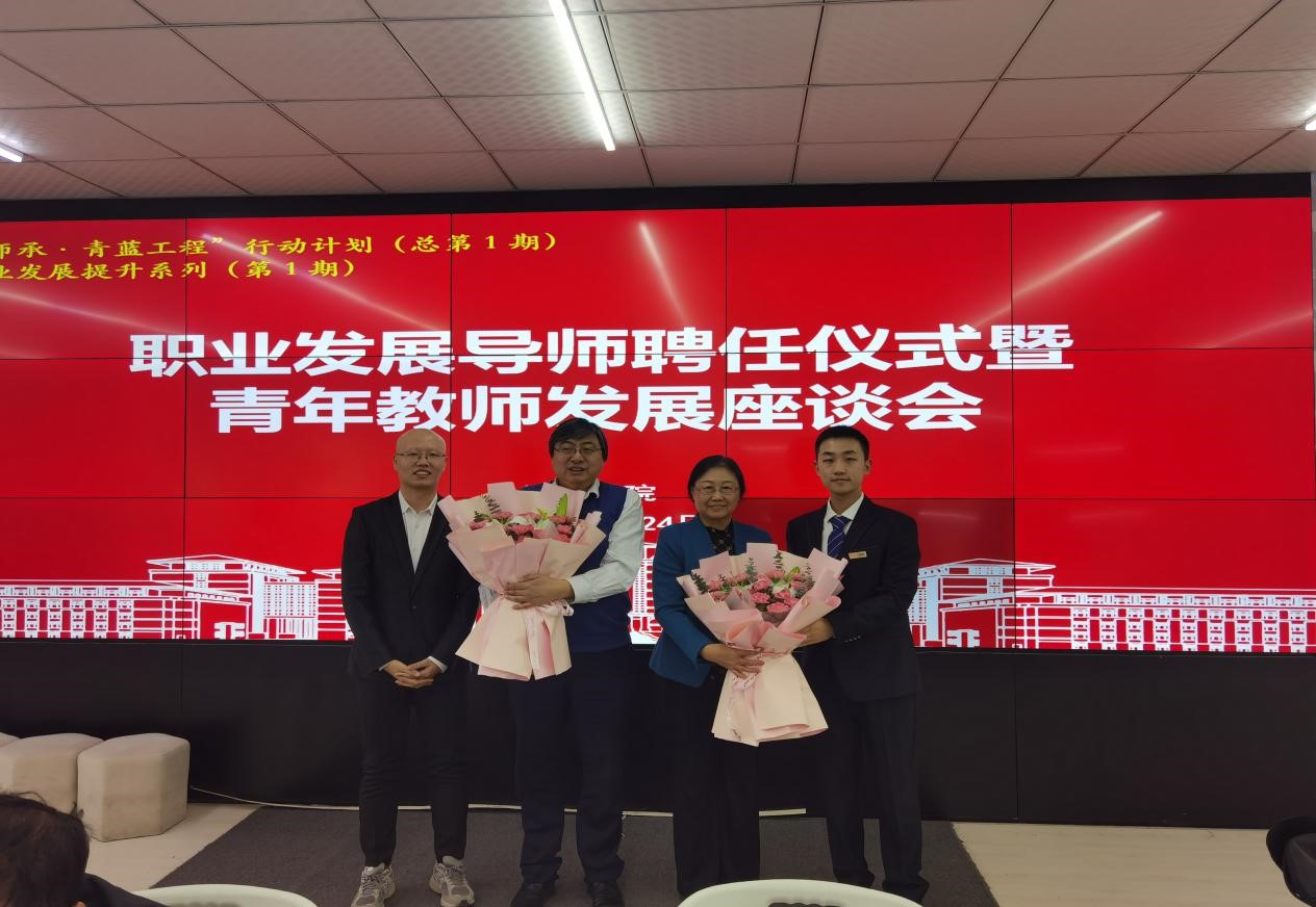 在职业发展导师聘任仪式环节,丁一兵院长首先对“师承·青蓝工程行动计划”活动方案进行了介绍,他强调了师承以及团队合作在学科建设和师资队伍建设尤其是青年教师队伍建设的重要性,并指出高质量科研成果对学科建设和青年人才个人职业发展中的关键作用,鼓励青年教师在职业生涯起始阶段就要有对高标准高水平高质量科研成果的追求和对标。接着,党委书记聂宏凯为职业发展导师杜莉教授、丁一兵教授颁发聘任证书,青年教师白晨江、李宁宁分别向导师献花。