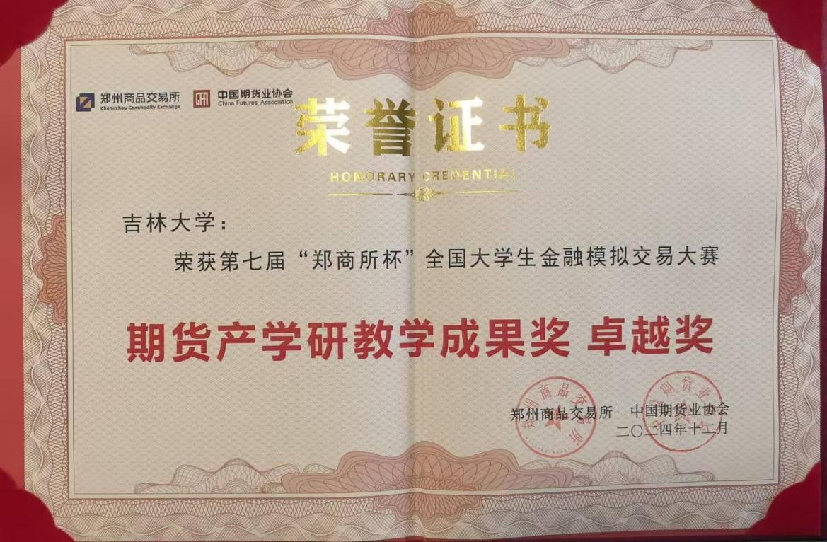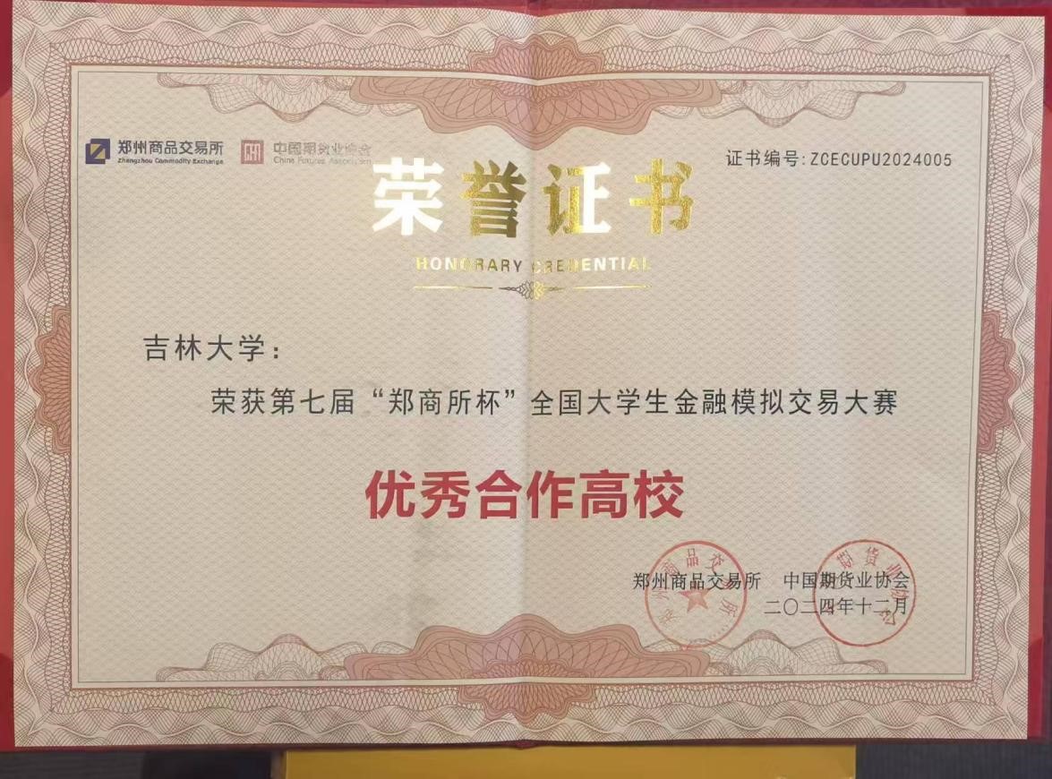 同时,必赢线路检测3003no1必赢线路检测3003凭借其卓越的期货教育体系与出色的教学实践成果,于第七届“郑商所杯”全国大学生金融模拟交易大赛中脱颖而出,斩获“期货产学研教学成果奖卓越奖”,并荣膺“优秀合作高校”称号,成为期货人才培养的典范。