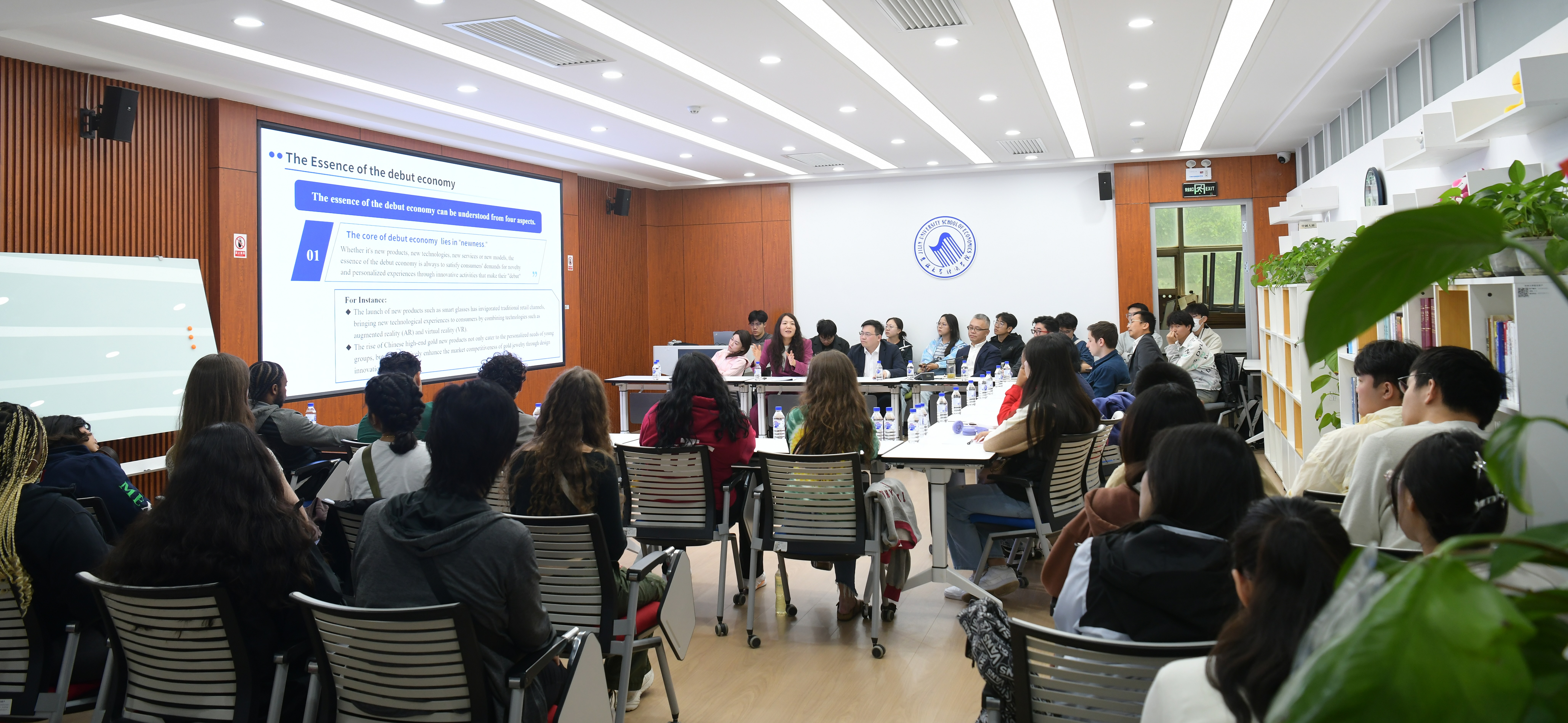 围绕首发经济等感兴趣的话题,中美两所高校师生展开了充分讨论。宋洋教授首先介绍了首发经济,提出首发经济是以创新为核心的新经济形态,其主要特征是“首”,即首次发布、首次展出或首次落地,其内涵在于企业通过发布新产品、推出新技术、新服务、新模式、新业态等经济活动,进而满足消费者对新鲜感和品质化的需求,激发市场活力,推动经济高质量发展。首发经济引起了在场师生的兴趣,与会师生以苹果发布会、华为产品全球化首发活动、智能眼镜、时尚新品等案例进行了深入分析,也围绕首发经济可能面临的风险和挑战、首发经济在冰雪产业中的推进机制、政府投资和公共服务效益的动态过程、当前经济形势下美国沃尔玛和Target等市场货物短缺与物价上涨的影响和趋势等内容热烈讨论。