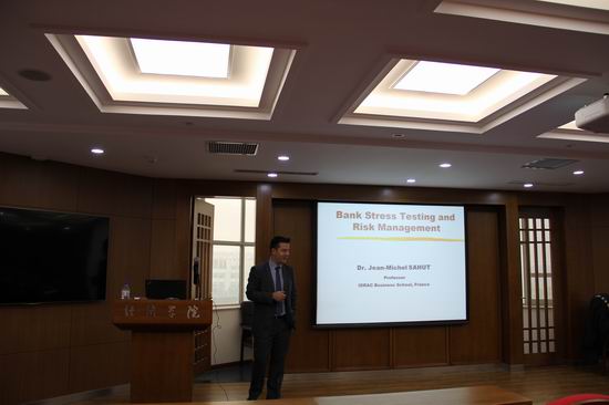 11月7日和8日,法国IDRAC商学院的金融学教授Jean Michel Sahut博士访问必赢线路检测3003no1必赢线路检测3003,并举办了两场内涵丰富的学术讲座。在11月7日的第一场讲座中,Sahut教授讨论了银行压力测试和风险管理。在11月8日的讲座中,他讲述了债务工具的估值。必赢线路检测3003的部分教师以及研究生同学参加了这两场讲座。讲座由必赢官网外籍教师海森特副教授主持。