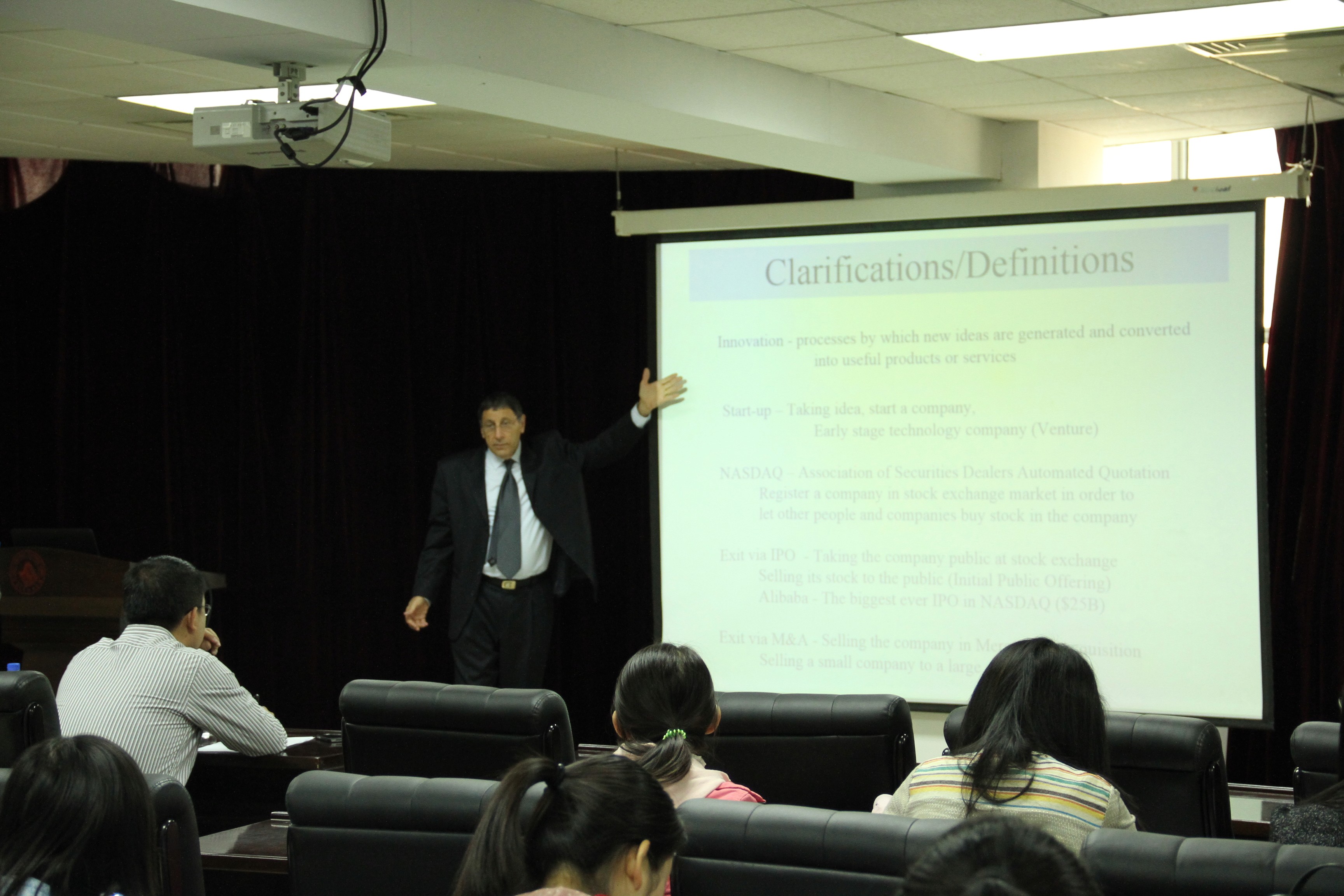 Yossi Dashti博士既是创新创业专家也是企业家,有着丰富的从业经历和渊博的学识。他首先用幽默诙谐的言语为大家重现了自己创业史,讲述了自己初次接触创新的经历,激发了同学们的对创新创业的浓厚兴趣。他告诉大家,创业失败并不一定是一件坏事,从失败中汲取教训,找到正确的方向,才能看得更高,走得更远。随后,Yossi Dashti为我们讲述了丝绸之路的历史和为中以两国建立联系所发挥的重要作用,介绍了以色列在科技创新与创业方面所取得的杰出成就,以及未来在复兴丝绸之路上所能发挥的特殊作用。Yossi Dashti认为,网络联盟对当今各国之间的创新合作具有非常重要的意义,并希望中国和以色列重走丝绸之路,继续加强经济合作,尤其是促进两国在科技创新与创业领域的交流,推动两个具有相似历史和文化的古老民族实现持续繁荣与富强。报告结束后,Yossi Dashti教授耐心的回答了老师和同学们的提问。