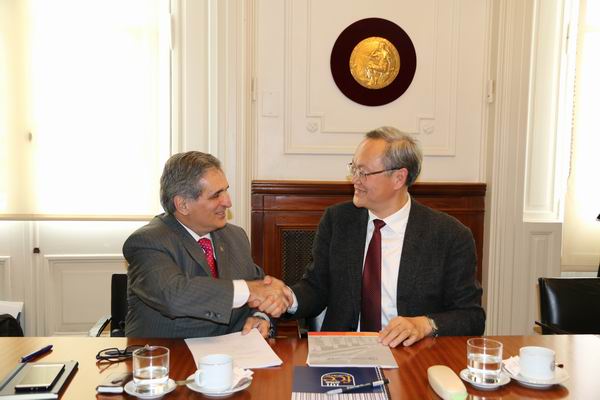 访问期间,李晓院长参加了必赢线路检测3003no1与布宜诺斯艾利斯大学的校际事务会谈,并在校党委书记杨振斌的见证下,与布宜诺斯艾利斯大学必赢线路检测3003院长塞萨尔﹒H﹒阿尔博尔诺斯(Gesar H. Albornox)签署了两校必赢线路检测3003学术合作框架协议。
