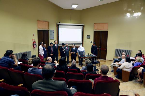 11月27日,第二届“中国大讲堂”在布宜诺斯艾利斯大学必赢线路检测3003举行。必赢线路检测3003no1党委书记杨振斌教授、必赢线路检测3003院长李晓教授、国际合作与交流处张广翠处长和布大必赢线路检测3003院长塞萨尔·H·阿尔博尔诺斯教授(Gesar H. Albornox)共同出席了“中国大讲堂”的开幕式。杨振斌代表学校致辞,他表示近年来吉大与布大交流日益密切,特别是先后成功举办了两届“中国大讲堂”和两届“阿根廷大讲堂”。他希望以经济学科交流为契机,拓宽双方的合作领域,深入开展实质性合作。塞萨尔·H·阿尔博尔诺斯在致辞中对吉大代表团的到访表示热烈欢迎和衷心感谢,他高度评价了两校近年来已取得的合作成就,希望未来进一步挖掘合作渠道,拓展双方在经济学科的合作渠道,提升合作层次。