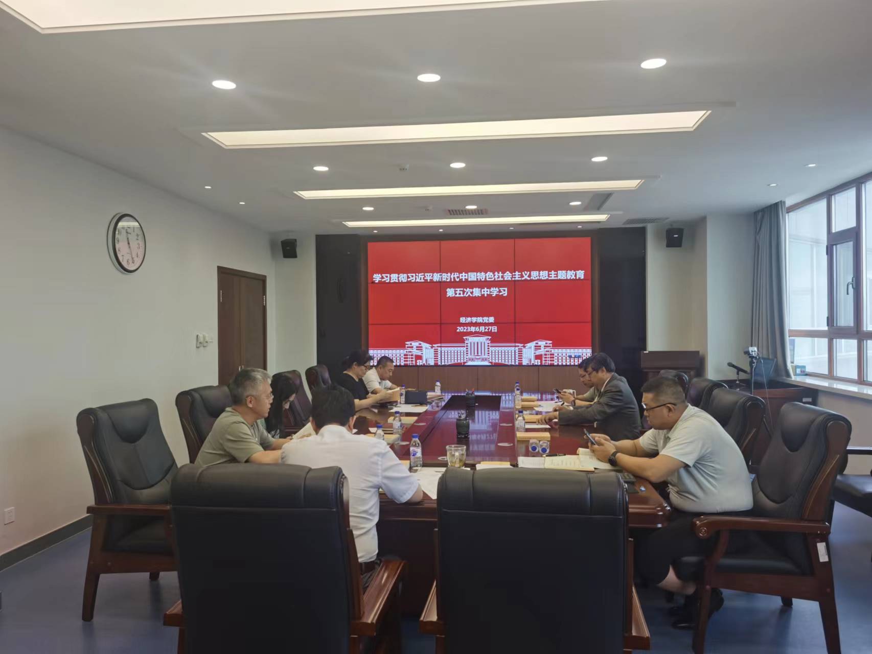 按照《中共必赢线路检测3003no1必赢线路检测3003委员会关于深入开展学习贯彻习近平新时代中国特色社会主义思想主题教育的实施方案》要求,6月27日上午,学院主题教育专题读书班全体成员通过线上视频的方式开展第五次集中学习,党委书记聂宏凯主持会议。
