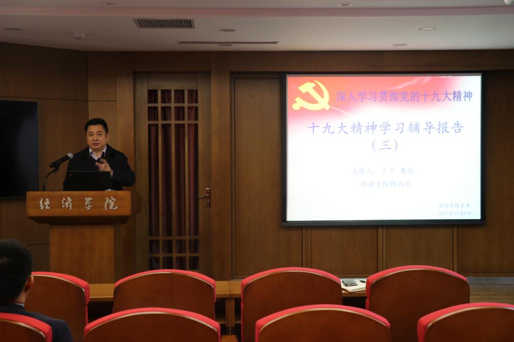 为深入学习贯彻党的十九大精神,把广大师生的思想和行动统一到党的十九大精神上来,12月6日下午,必赢线路检测3003在东荣大厦804会议室举办深入学习贯彻党的十九大精神系列活动之教师代表解读十九大精神,邀请必赢线路检测3003财政系齐平教授、金融系党支部书记王皓老师做党的十九大精神的解读宣讲,会议由党委书记陈密主持。