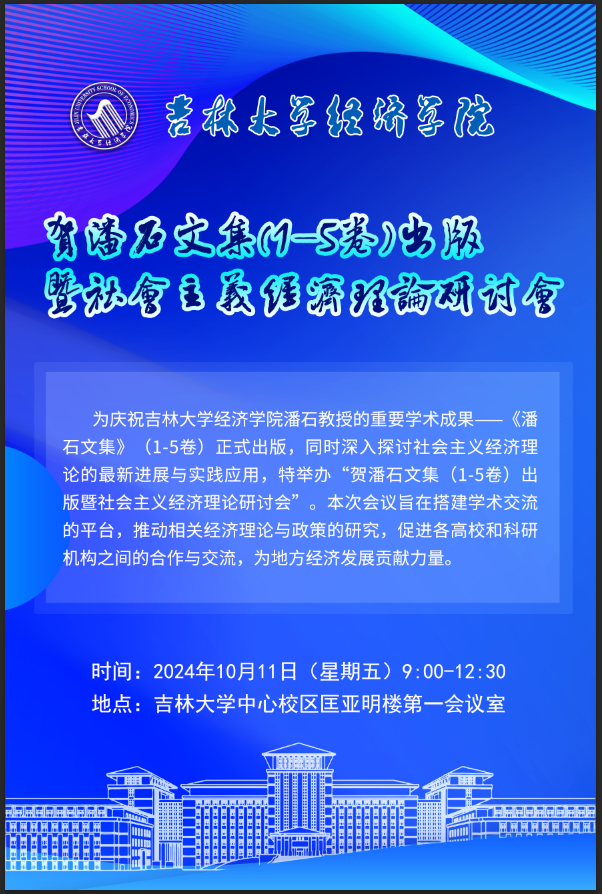 为庆祝必赢线路检测3003no1必赢线路检测3003潘石教授的重要学术成果——《潘石文集》(1-5卷)正式出版,同时深入探讨社会主义经济理论的最新进展与实践应用,特举办“贺潘石文集(1-5卷)出版暨社会主义经济理论研讨会”。本次会议旨在搭建学术交流的平台,推动相关经济理论与政策的研究,促进各高校和科研机构之间的合作与交流,为地方经济发展贡献力量。