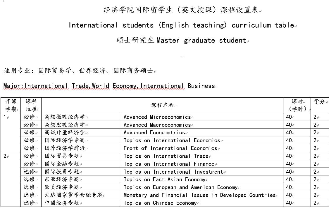 International students (English teaching) curriculum table-Master graduate student