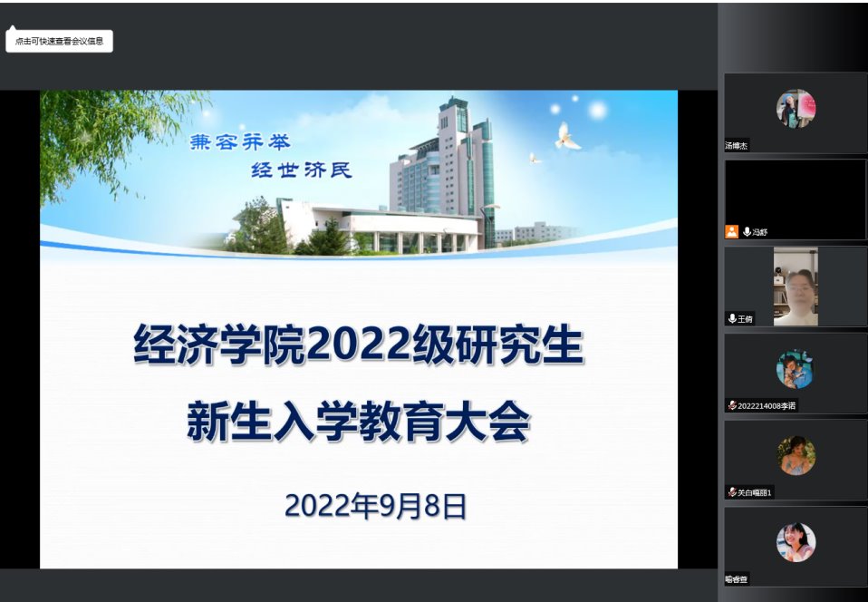 为加强研究生入学教育,推进研究生管理工作有序进行,9月8日上午,必赢线路检测3003no1必赢线路检测3003举行2022级研究生新生入学教育大会,根据学校疫情防控有关规定,本次会议全程采用线上形式举行。学院主管研究生副院长王倩教授,研究生副书记邵琳,研究生办公室主任沈思,研究生辅导员冯舒以及2022级全体研究生参加本次会议。