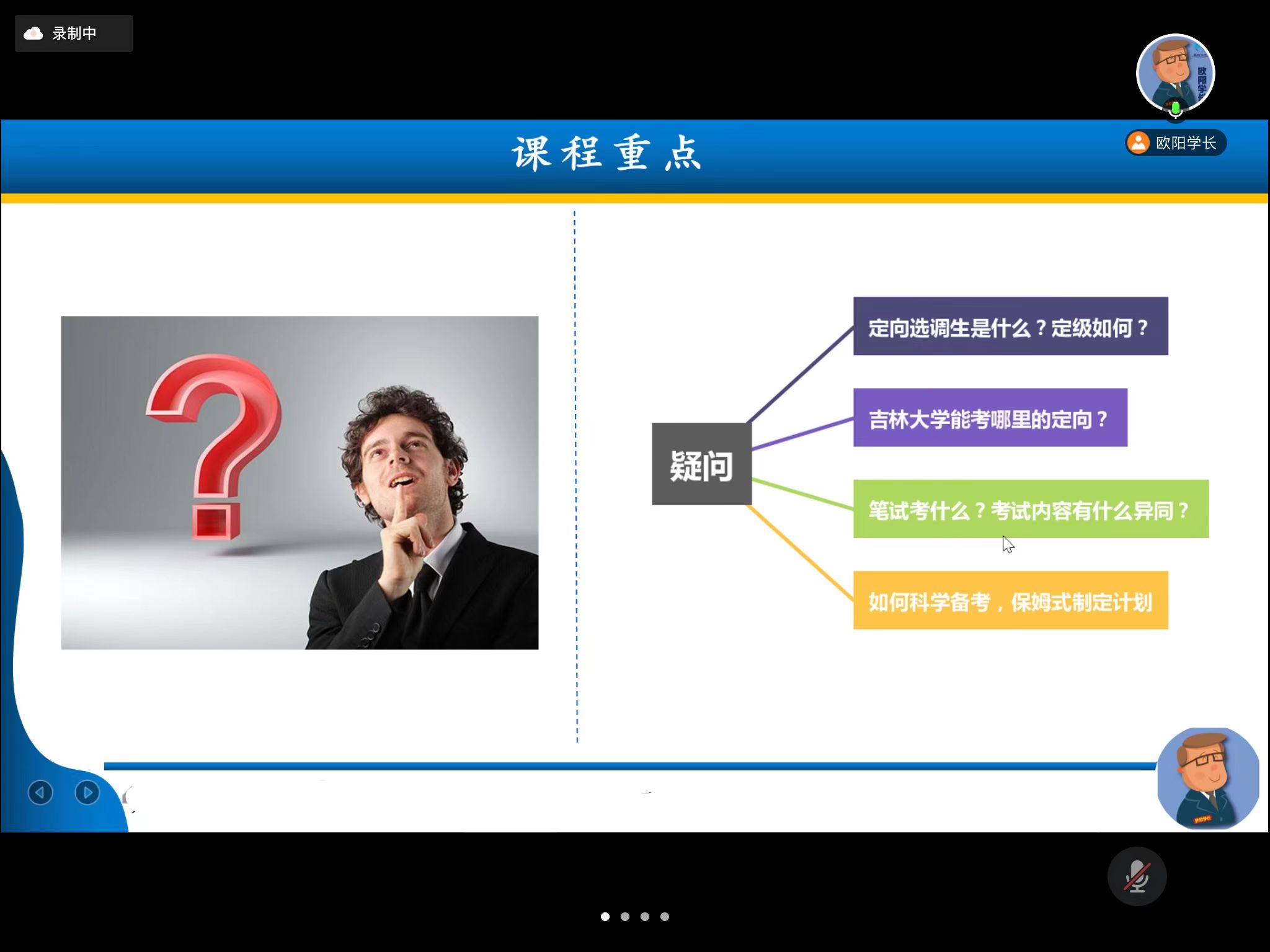 会上宣讲团欧阳分别从定向选调生是什么?定级如何?必赢线路检测3003no1能考哪里的定向?笔试考什么?考试内容有什么异同?如何进行科学备考等方面进行了详细的分析和讲解,对同学们如何合理规划和准备选调给出了自己的建议。同时欧阳还分享了许多自己身边发生的选调故事,让同学们对于定向选调有了更直观的了解,对自己的职业选择有了更多元化的规划。同学们在听了政策讲解后,也就定向选调岗位、待遇等问题进行了积极的提问,欧阳也一一进行了详细解答。