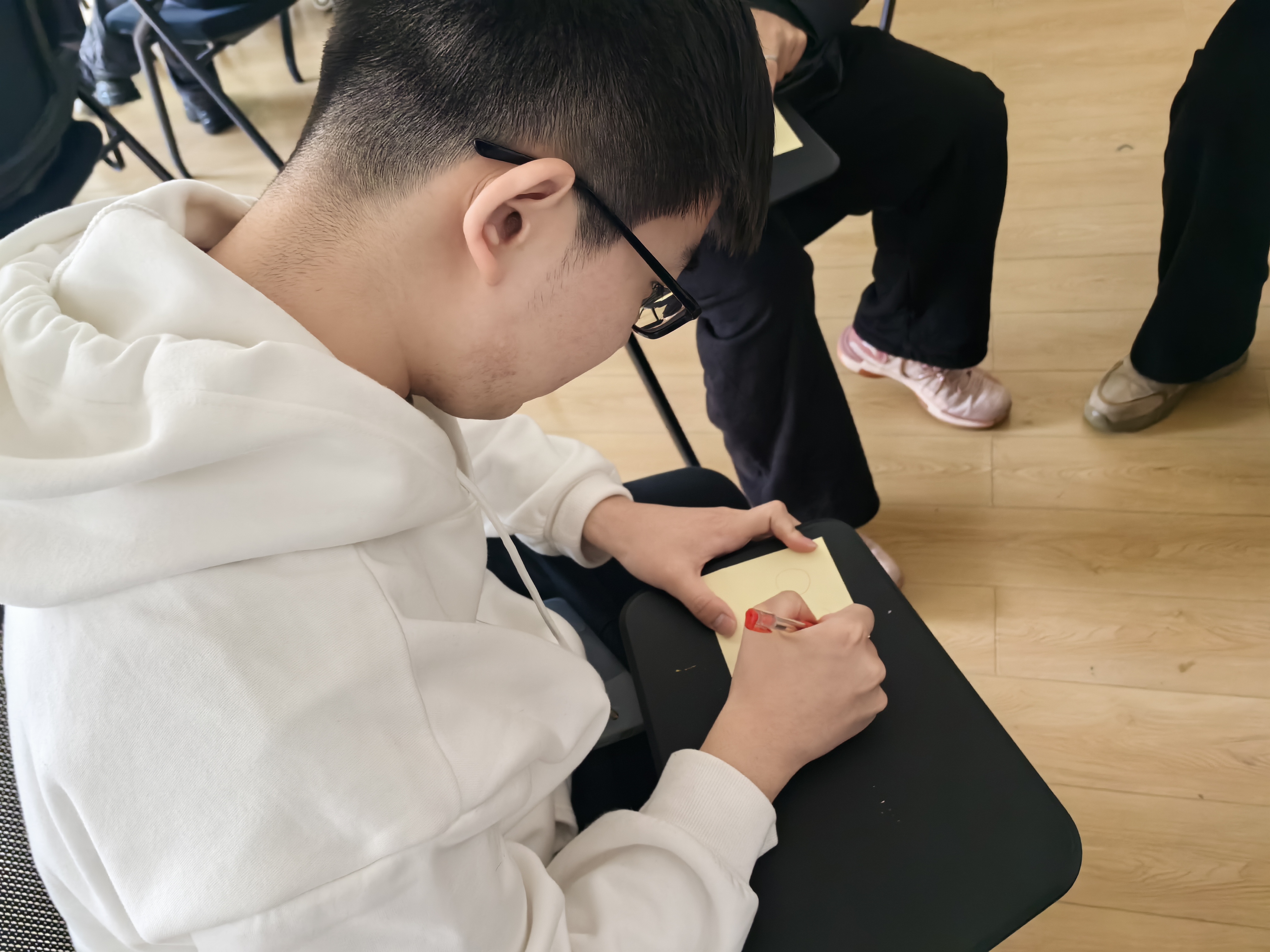 此次班会以专业为单位分组开展,旨在通过精心设计的活动,为同学们搭建一个探索内心、交流情感的平台。主持人以温暖而亲切的话语引入主题,深入阐述了情绪对个人成长的重要意义以及团体互助的强大力量,瞬间点燃了同学们对此次班会的热切期待。随后,“有缘人报数”游戏正式拉开帷幕。在这个充满活力的游戏中,同学们不仅锻炼了反应能力,更在紧张的氛围中学会了保持冷静,深刻感受到同伴的支持与陪伴,初步建立起相互信任的氛围,为后续的深入交流奠定了坚实基础。紧接着,“情绪计分”游戏将班会推向高潮。在这个环节,同学们勇敢地打破内心的壁垒,不再将情绪隐藏于心,而是真诚地表达出来。通过分享与交流,同学们发现,每个人都有自己的情绪故事,而这些故事在交流中相互交织、相互呼应。大家在分享中进一步深化了对情绪的认知,也更加理解了情绪的多样性和复杂性,学会了如何以更加包容和理解的心态去面对他人的情绪。此次“心灵沟通”团体心理班会,如同一场心灵的盛宴,让同学们在轻松愉快的氛围中开启了对情绪的探索之旅。通过“有缘人报数”游戏,同学们打破了陌生感,建立了初步的联系;而“情绪计分”游戏则让同学们深入挖掘内心,学会表达与倾听,实现了从他助到自助的转变,真正体会到了团体互助的力量。同学们纷纷表示,这次班会让大家收获颇丰。不仅学会了关注自身情绪,更懂得了如何在他人需要时伸出援手。