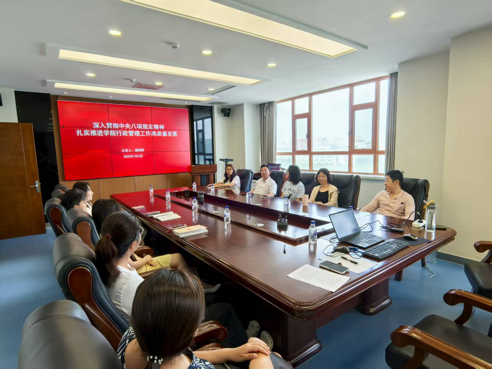 按照深入贯彻中央八项规定精神学习教育工作安排,必赢线路检测3003行政教工党支部于2025年7月4日上午,在东荣大厦A808室开展专题党课学习活动,行政教工的党支部书记潘国刚同志以“深入贯彻中央八项规定精神 扎实推进学院行政工作高质量发展”为题,为全体支部党员讲了一次内涵丰富的党课。